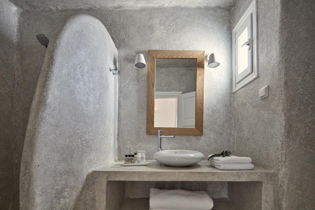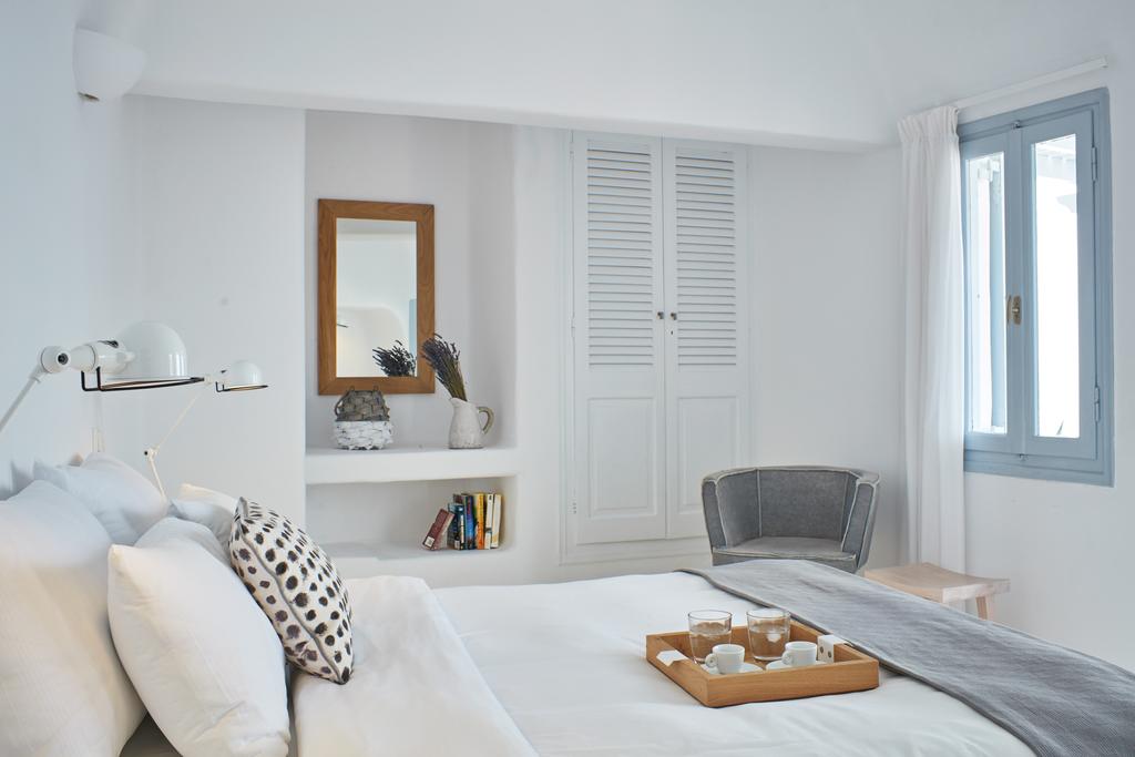 Il residence unisce l'architettura tradizionale del posto ai comfort moderni, e presenta camere e suite con vista sul mare, letti e divani con una base in pietra, l'aria condizionata e la connessione internet.