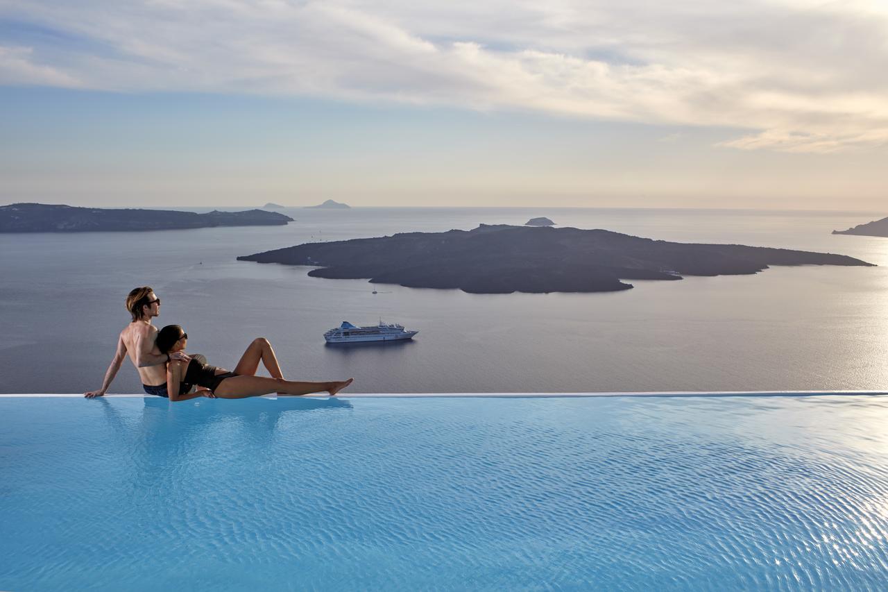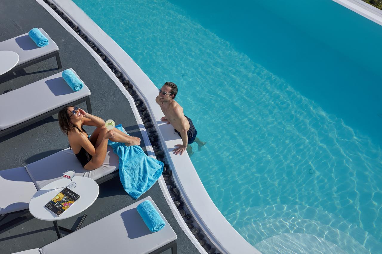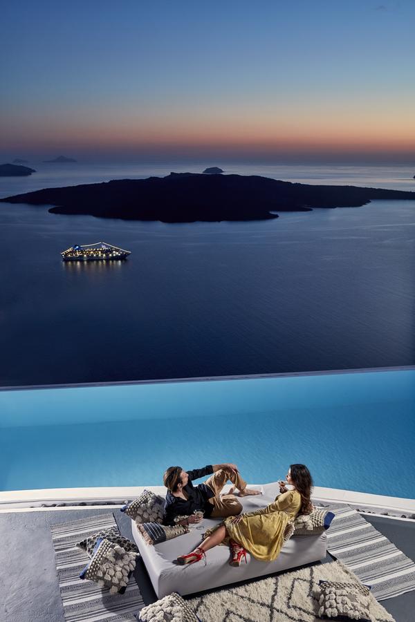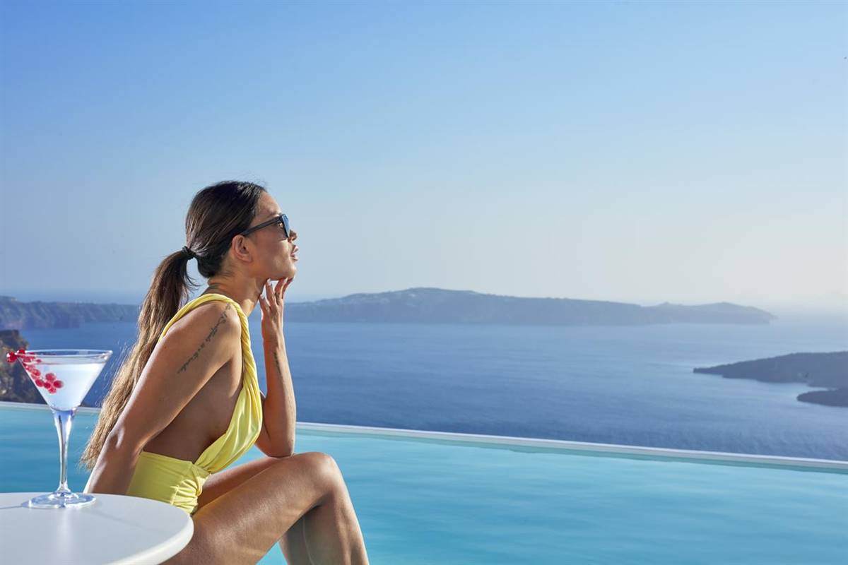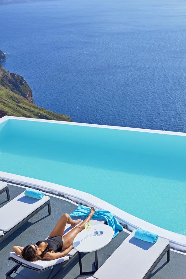 Il Cosmopolitan Suites vanta una piscina a sfioro a picco sulla scogliera, e una terrazza solarium con una delle vedute più spettacolari sulla caldera e sul vulcano.