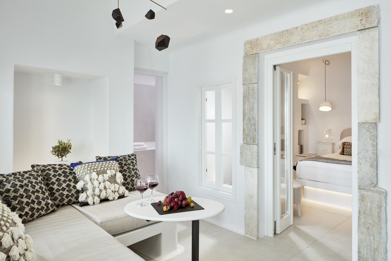 Il Cosmopolitan Suites dispone di 10 alloggi distinti, elegantemente arredati nello stile di Santorini e dotati di veranda privata o semi-privata, o di balconi affacciati sul mare e sul vulcano e con connessione WiFi gratuita