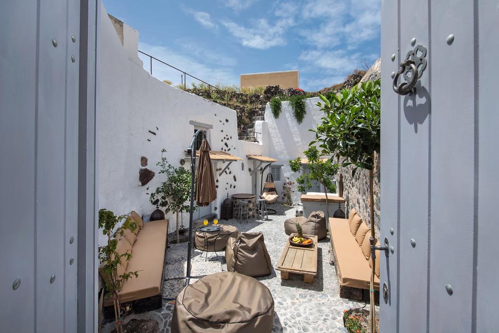 dista 13 km da Oia e 7 km da Fira. 5 km dall'Aeroporto Internazionale di Santorini, lo scalo più vicino.