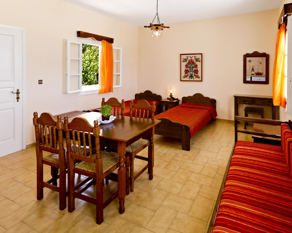 Affacciati sul giardino di palme o sul Mar Egeo, gli appartamenti del Dolphins presentano arredi semplici, area salotto e angolo cottura con zona pranzo. Tutte dotate di aria condizionata, le sistemazioni comprendono frigorifero, TV e asciugacapelli. La connessione Wi-Fi gratuita è disponibile in alcuni appartamenti.