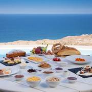 Potrete iniziare la giornata gustando una ricca colazione continentale comodamente nella vostra suite, ammirando una vista panoramica sul blu infinito del Mar Egeo.