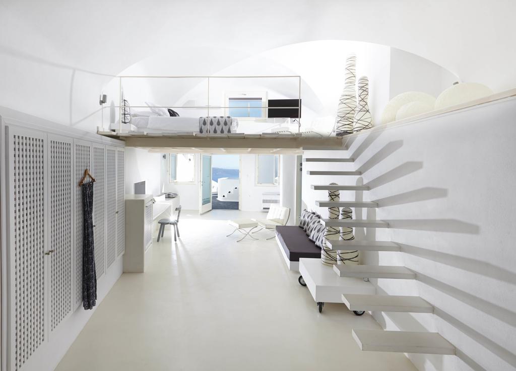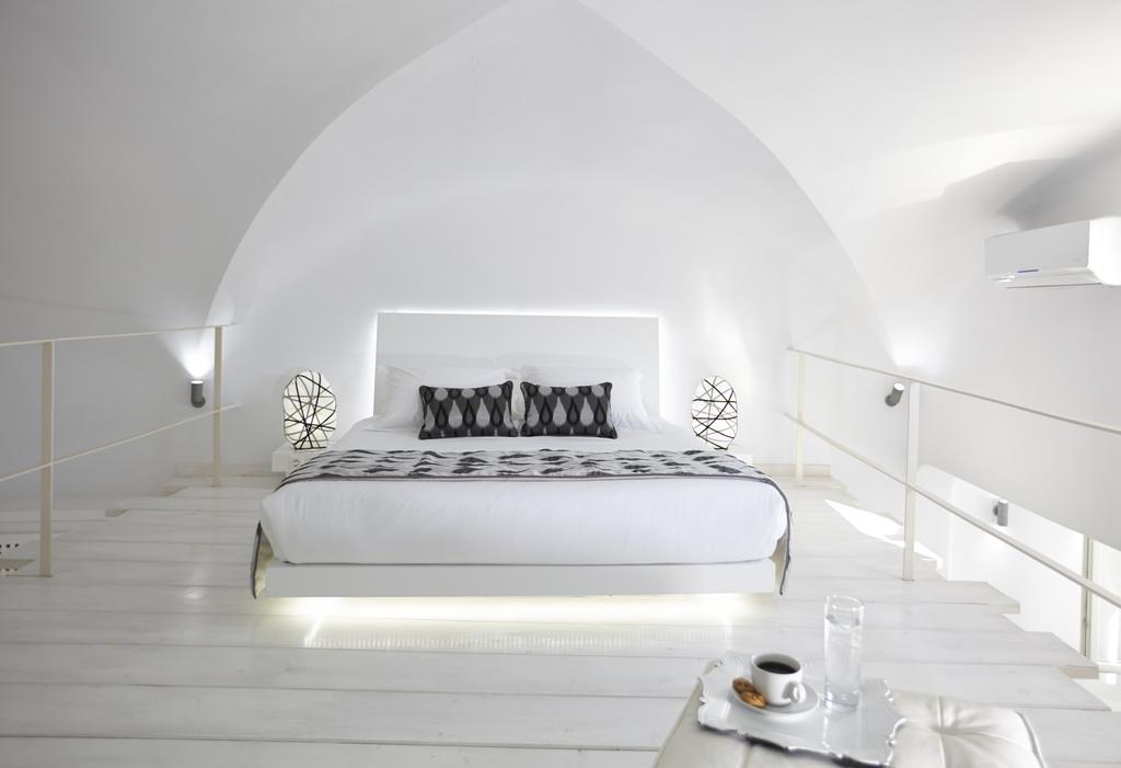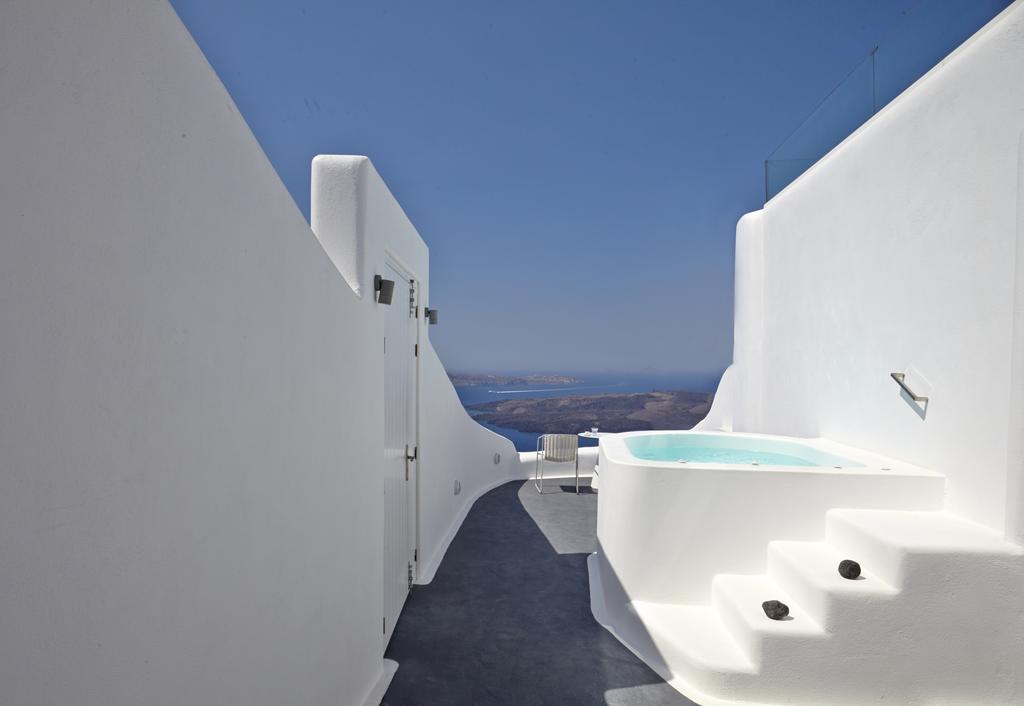 Tutte le unità abitative sono state progettate secondo lo stile delle Cicladi e vantano un terrazzo privato completo di piscina o vasca idromassaggio, con vista sulla spettacolare caldera e sul Mare Egeo. Il numero limitato di sistemazioni assicura la massima intimità e un'elevata qualità del servizio.