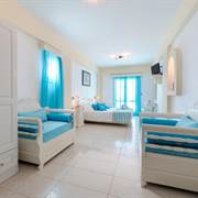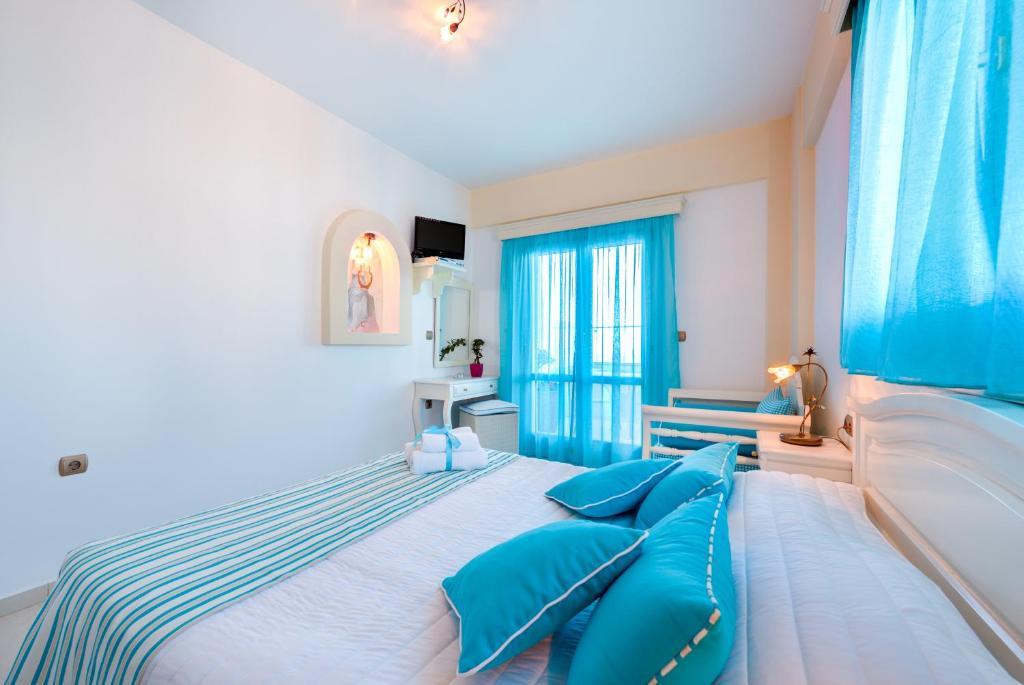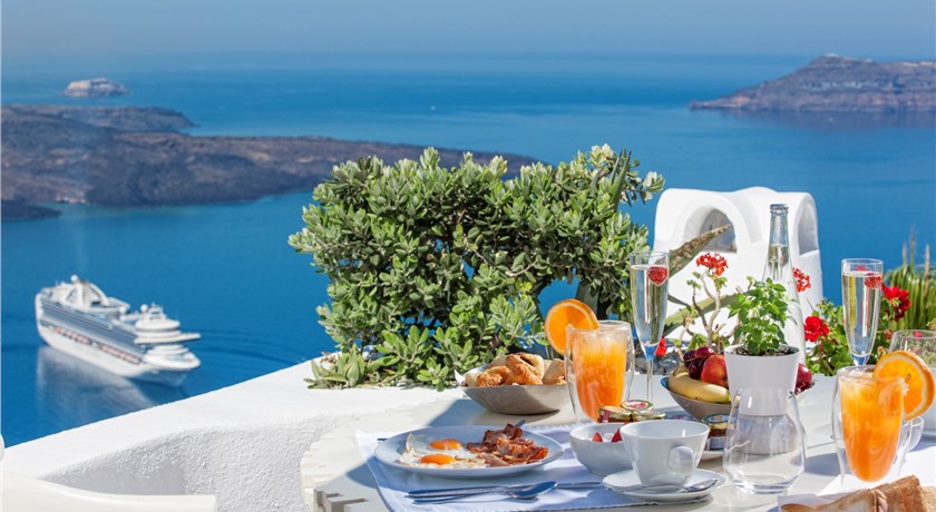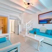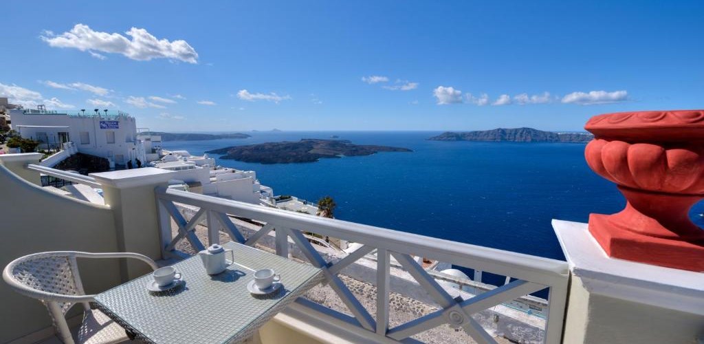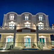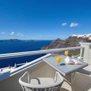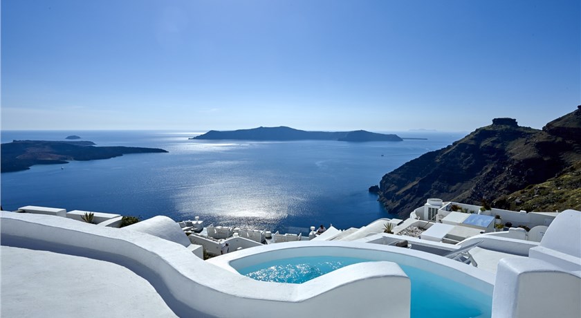 It boasts minimal Cycladic architecture and a fitness centre, as well as rooms with private balconies, most with breathtaking view of the sea and the sunset.
