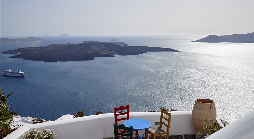 Ellinon Thea Boutique Hotel is wonderfully located in Firostefani, Santorini, offering an immense view of the Aegean Sea and the volcano emerging through its crystal clear waters.