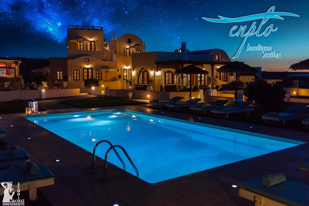 Il complesso En Plo sorge in una posizione comoda vicino a una fermata degli autobus, a 18 km dall'Aeroporto di Santorini, a 20 km dal porto di Athinios e a 2,5 km dal centro di Oia, raggiungibile tramite il servizio di trasferimento usufruibile su richiesta e a un costo aggiuntivo.