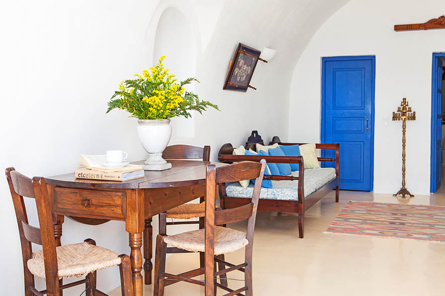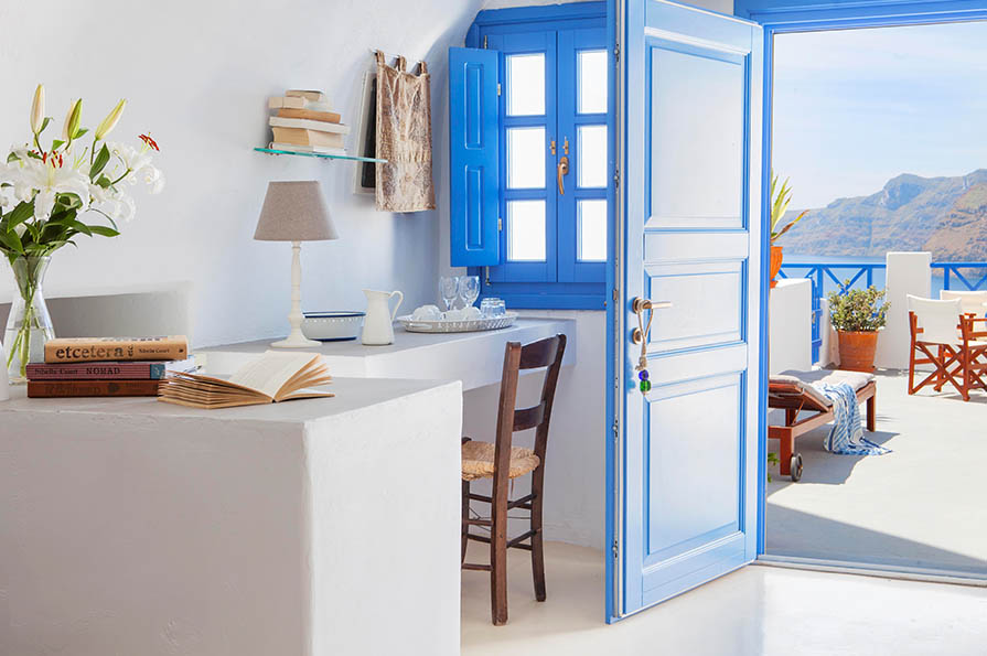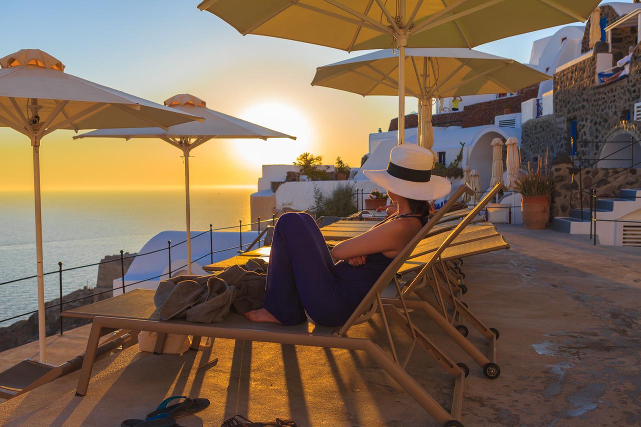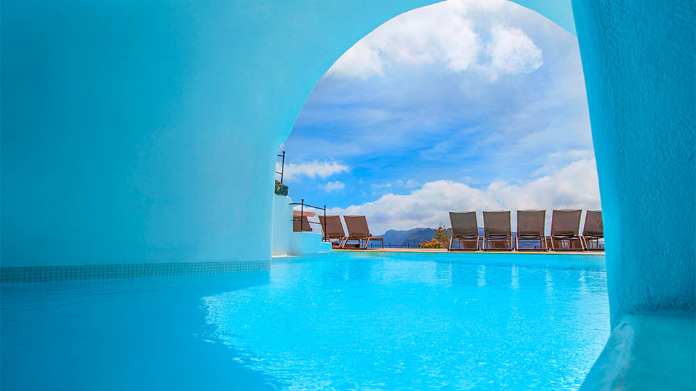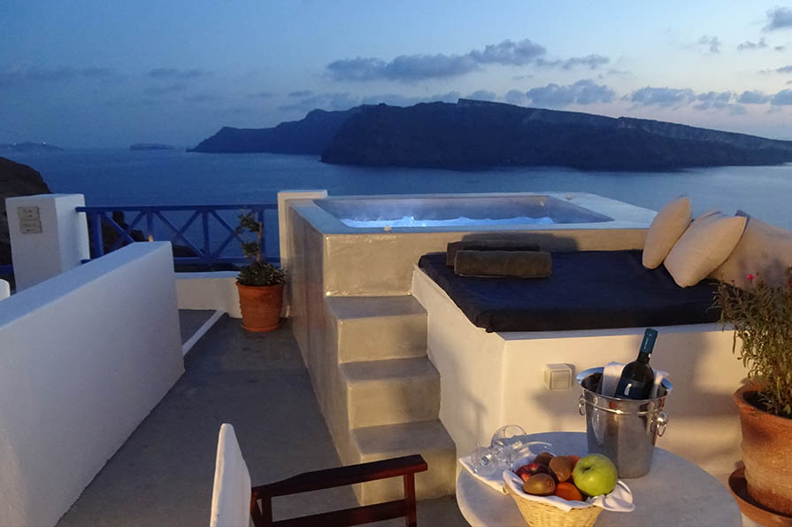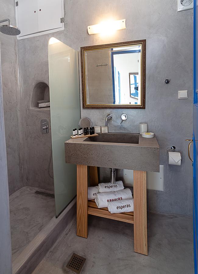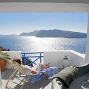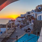Arroccato su una scogliera, di fronte al vulcano e alle isolette, l'Esperas di Oia vanta una piscina scolpita nella roccia e camere con viste impareggiabili sul Mar Egeo.