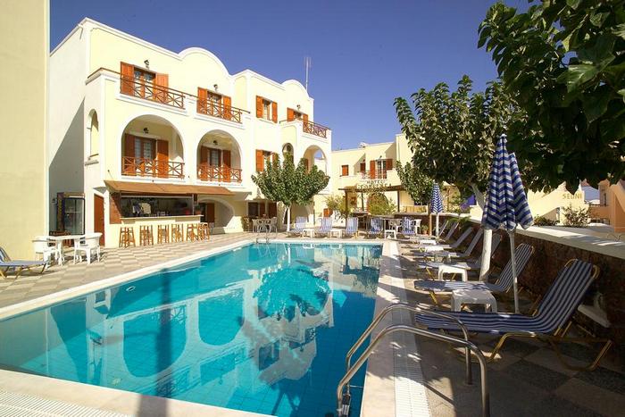 Questo hotel a conduzione familiare si trova a solo 150 metri dalla spiaggia e a 150 metri dal centro della località, nel pittoresco villaggio costiero di Kamari.