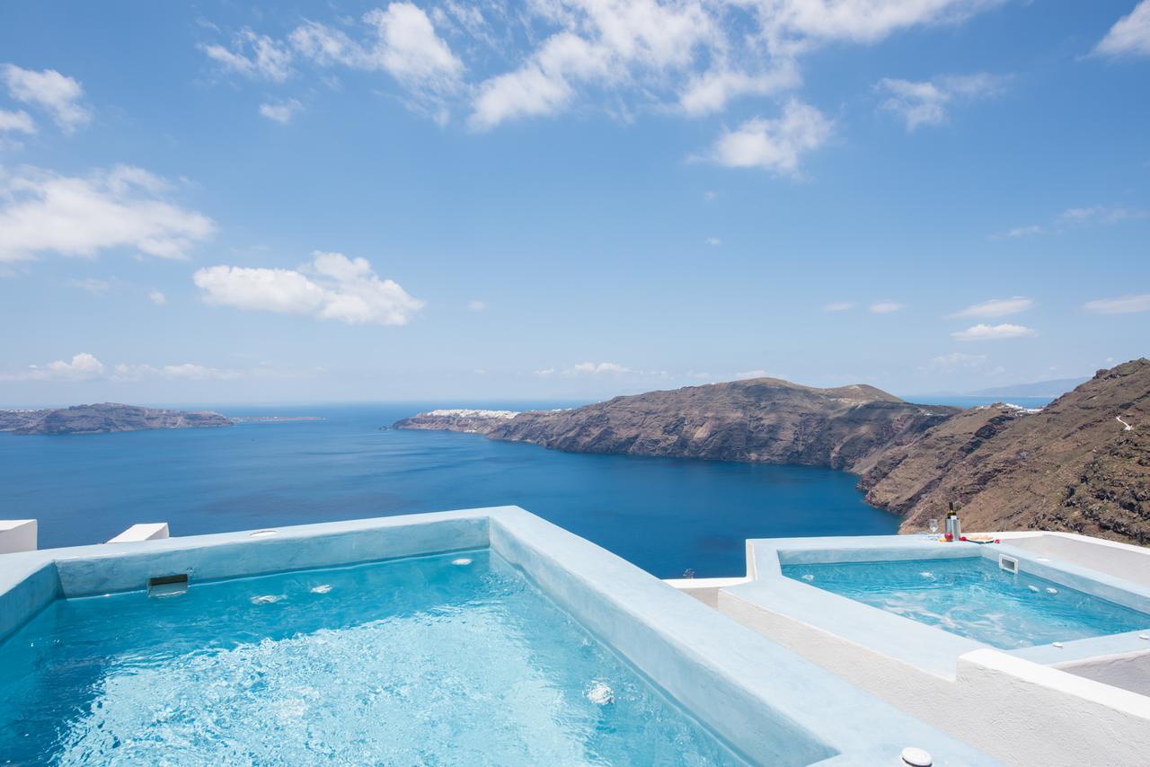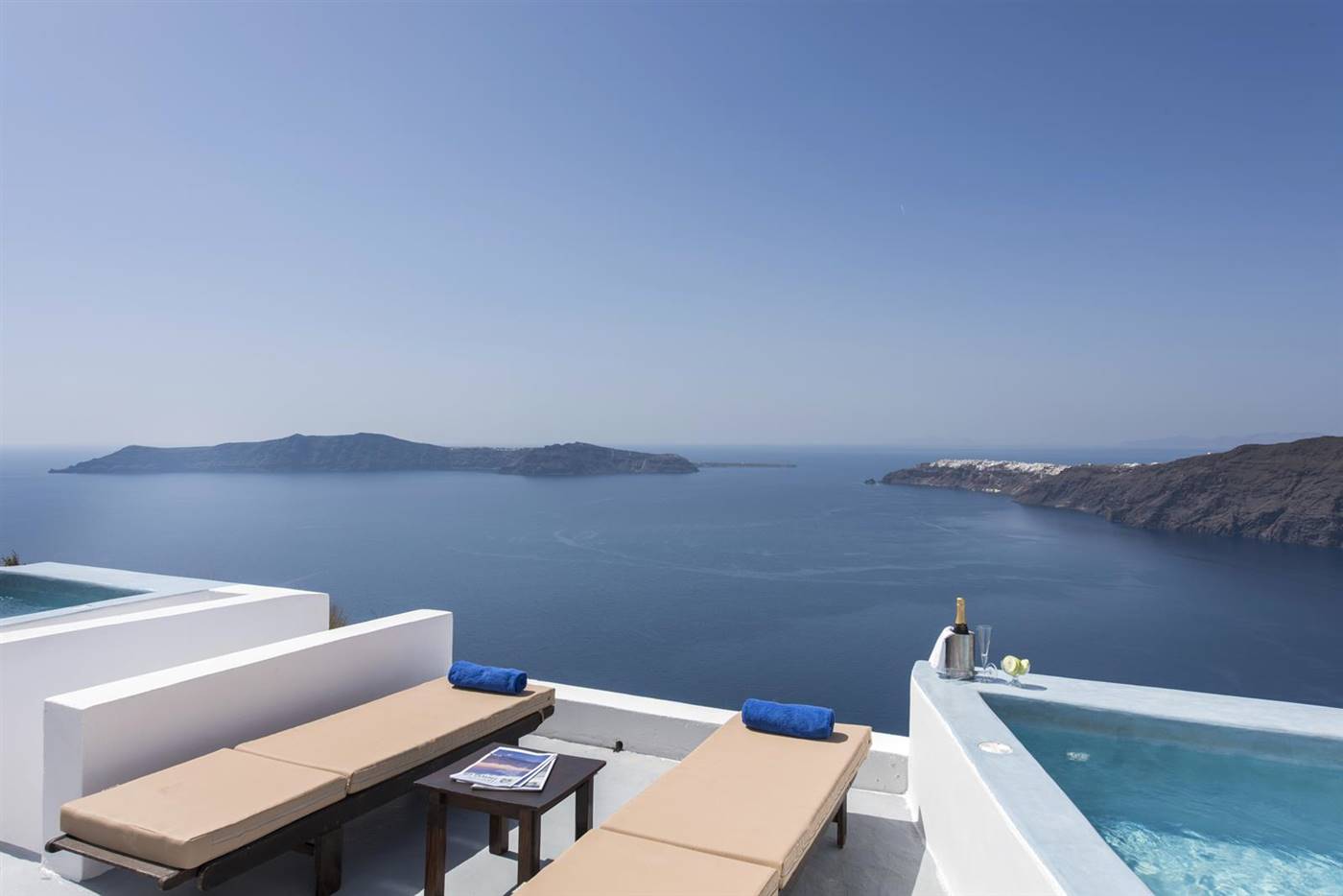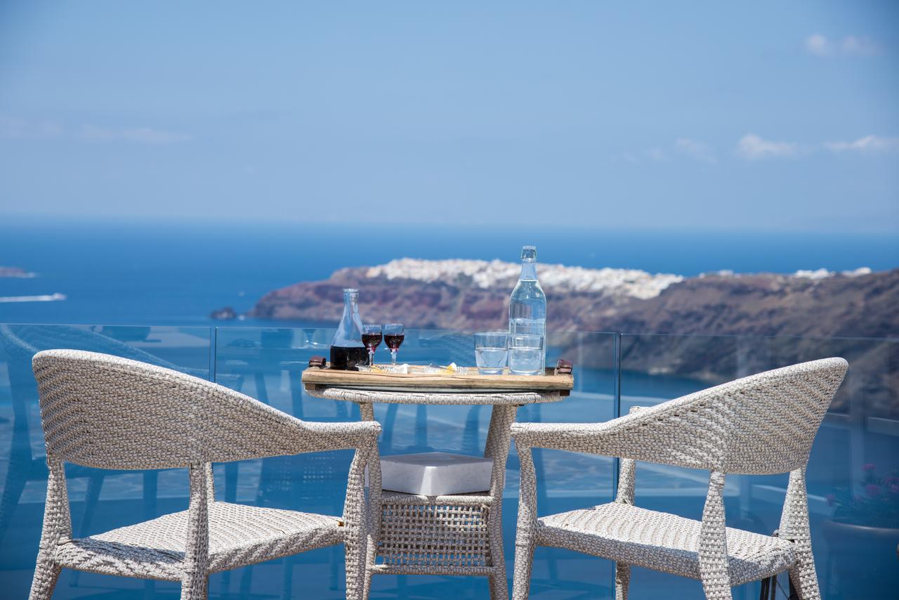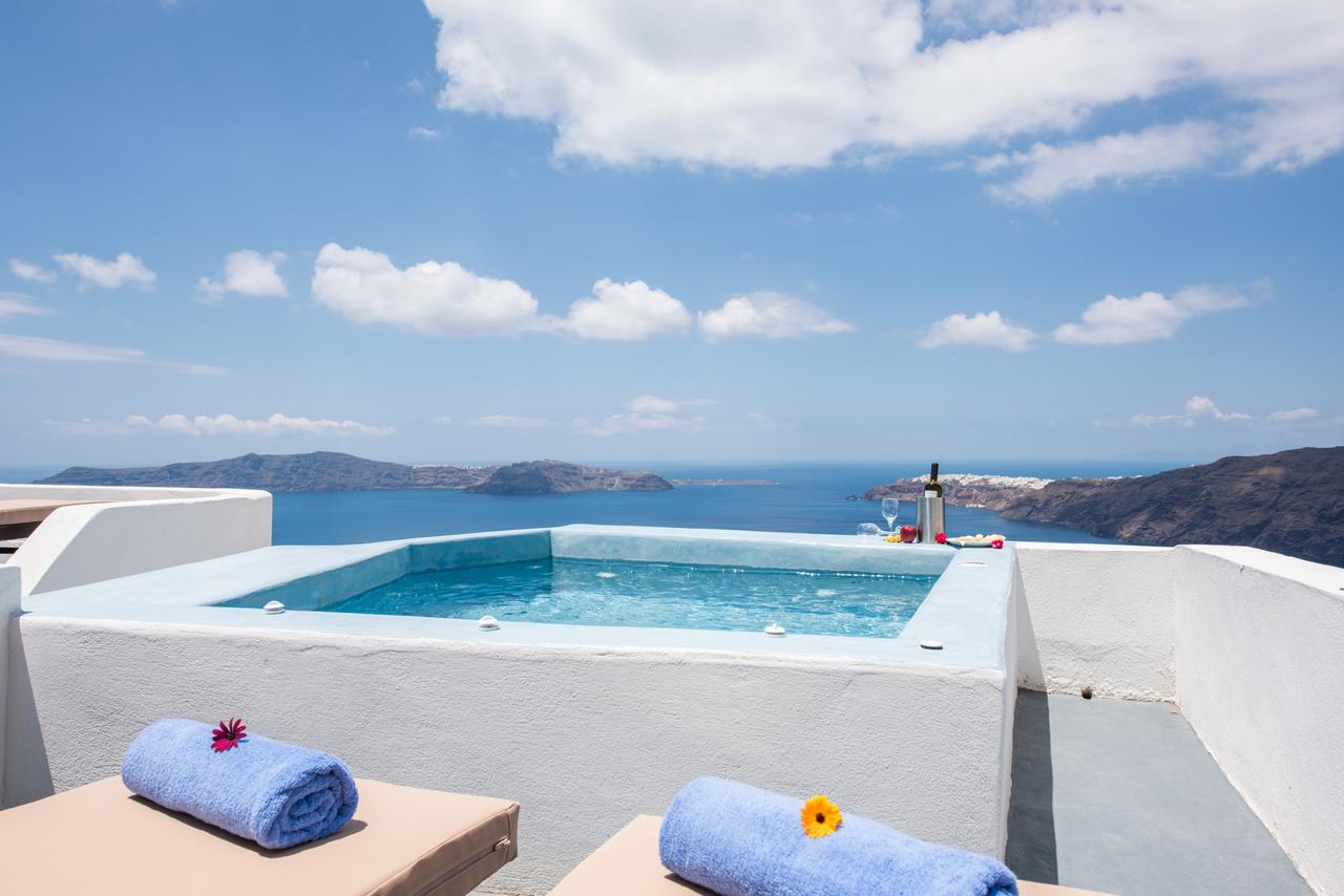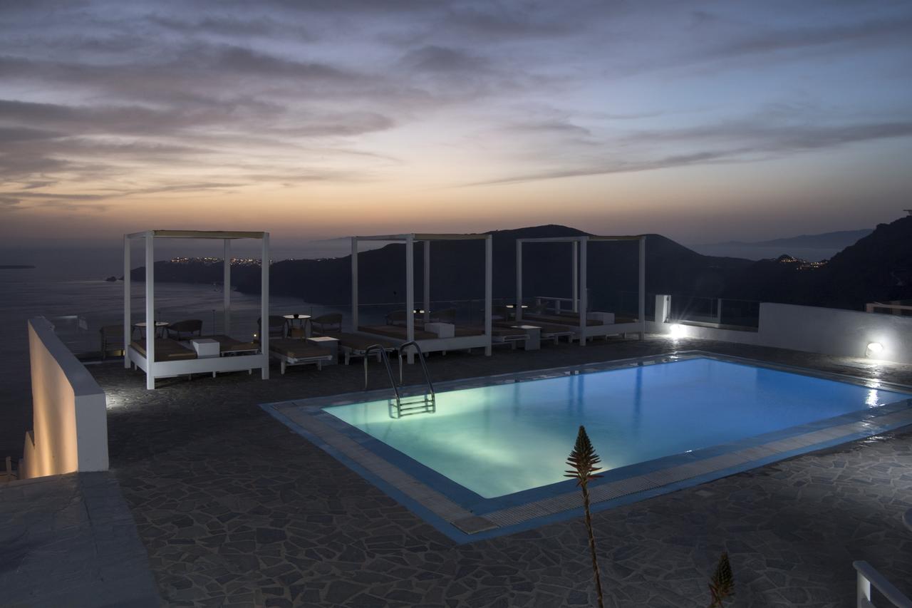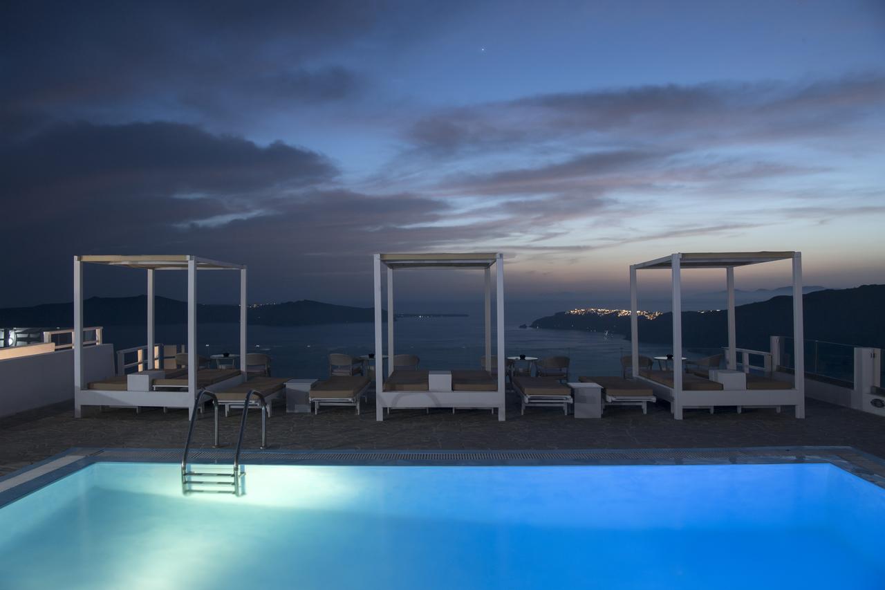 Potrete gustare la colazione a bordo piscina o rilassarvi sulla terrazza e godere della vista sconfinata sul mare e sulla Caldera.
