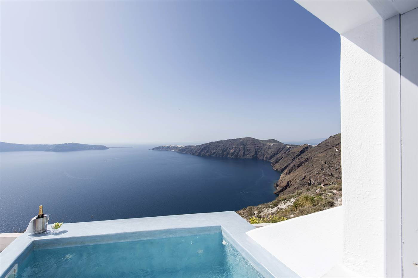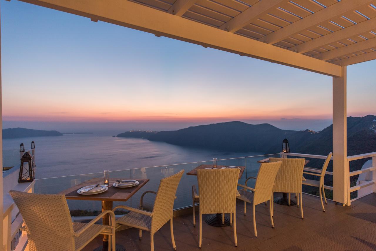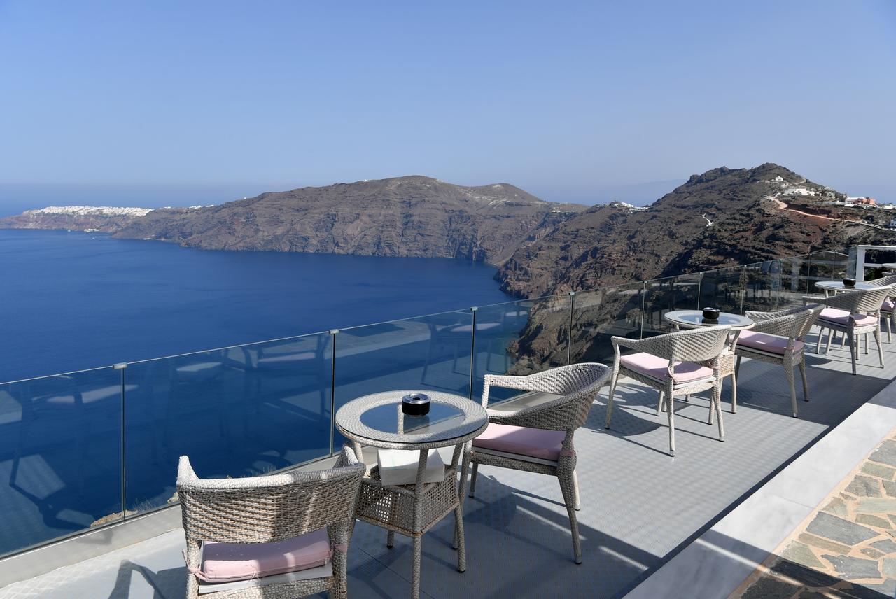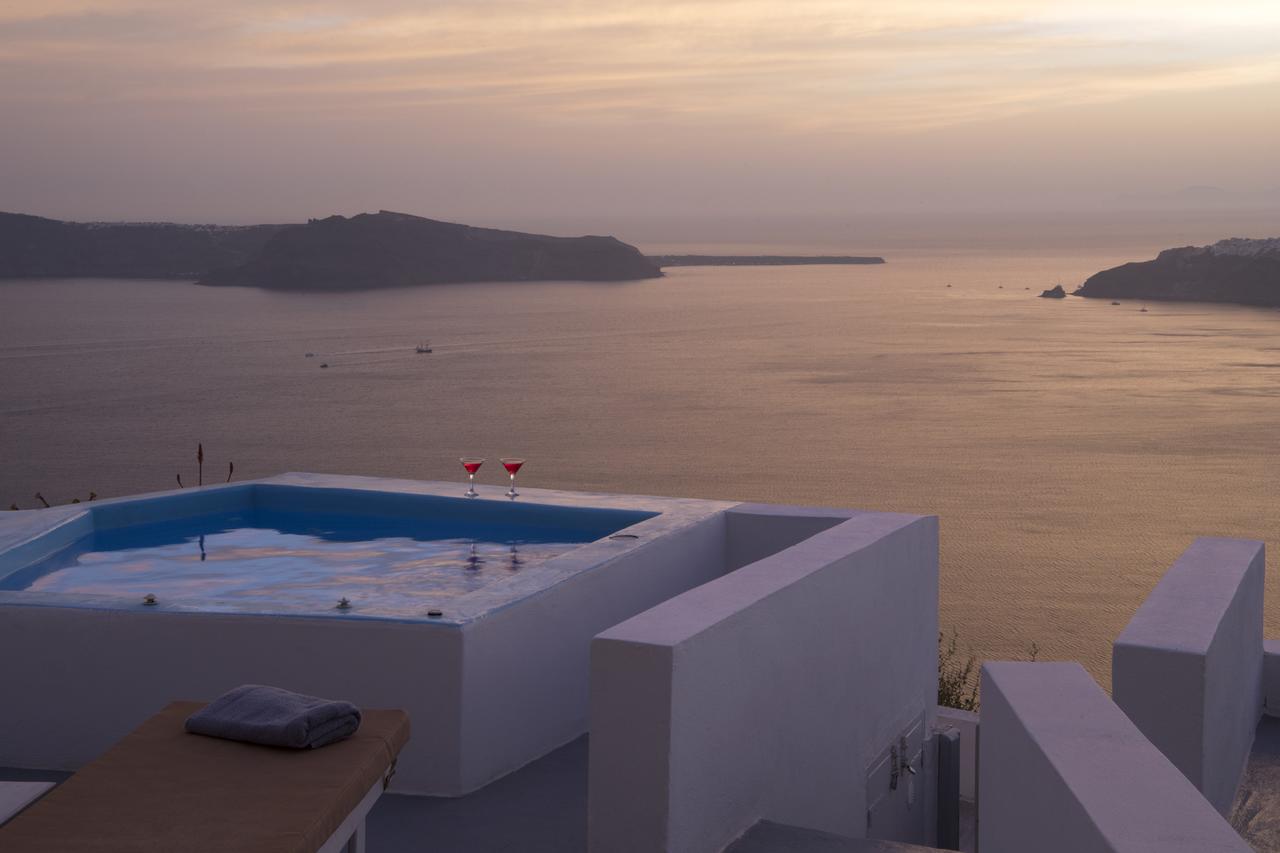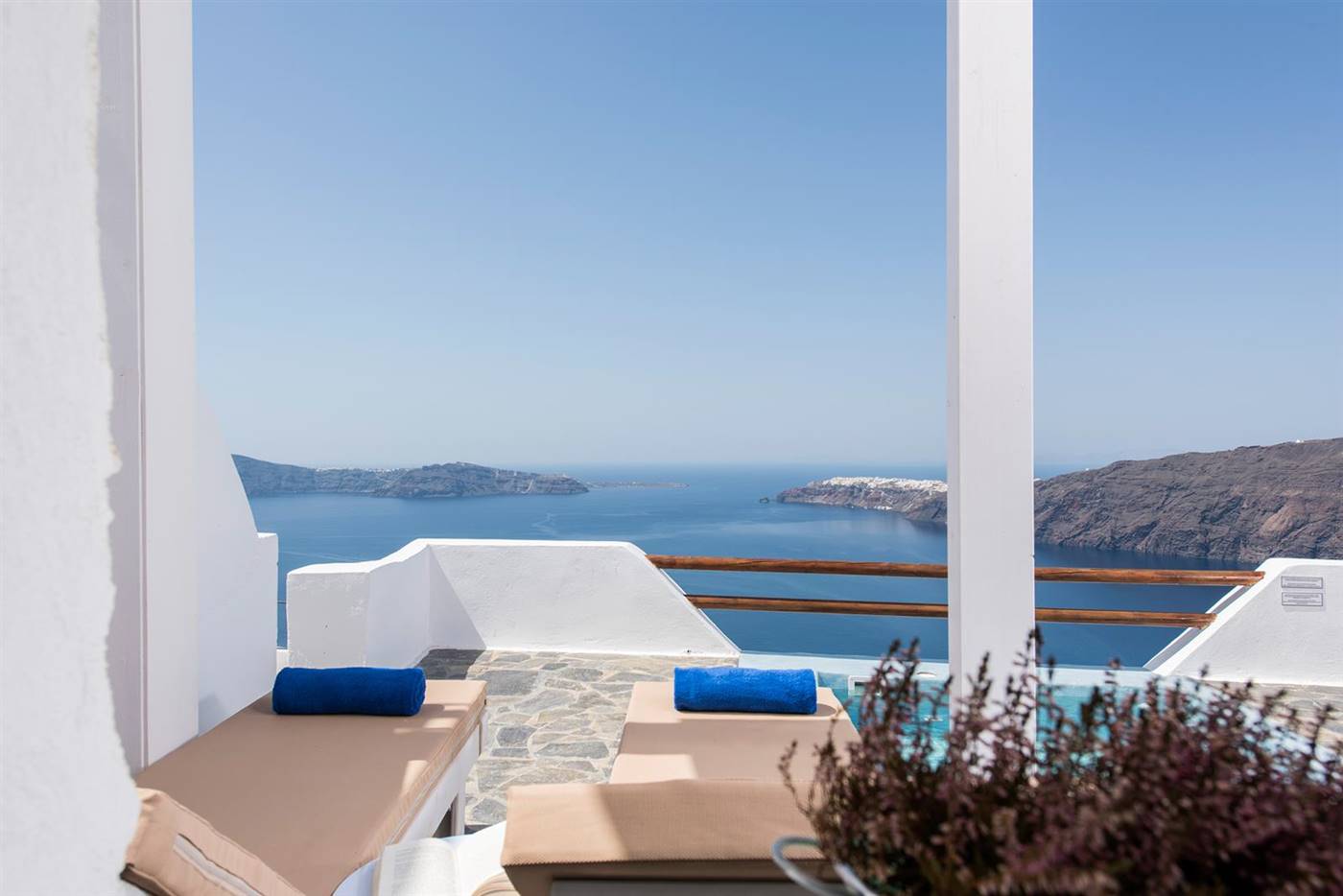 Potrete gustare la colazione a bordo piscina o rilassarvi sulla terrazza e godere della vista sconfinata sul mare e sulla Caldera.