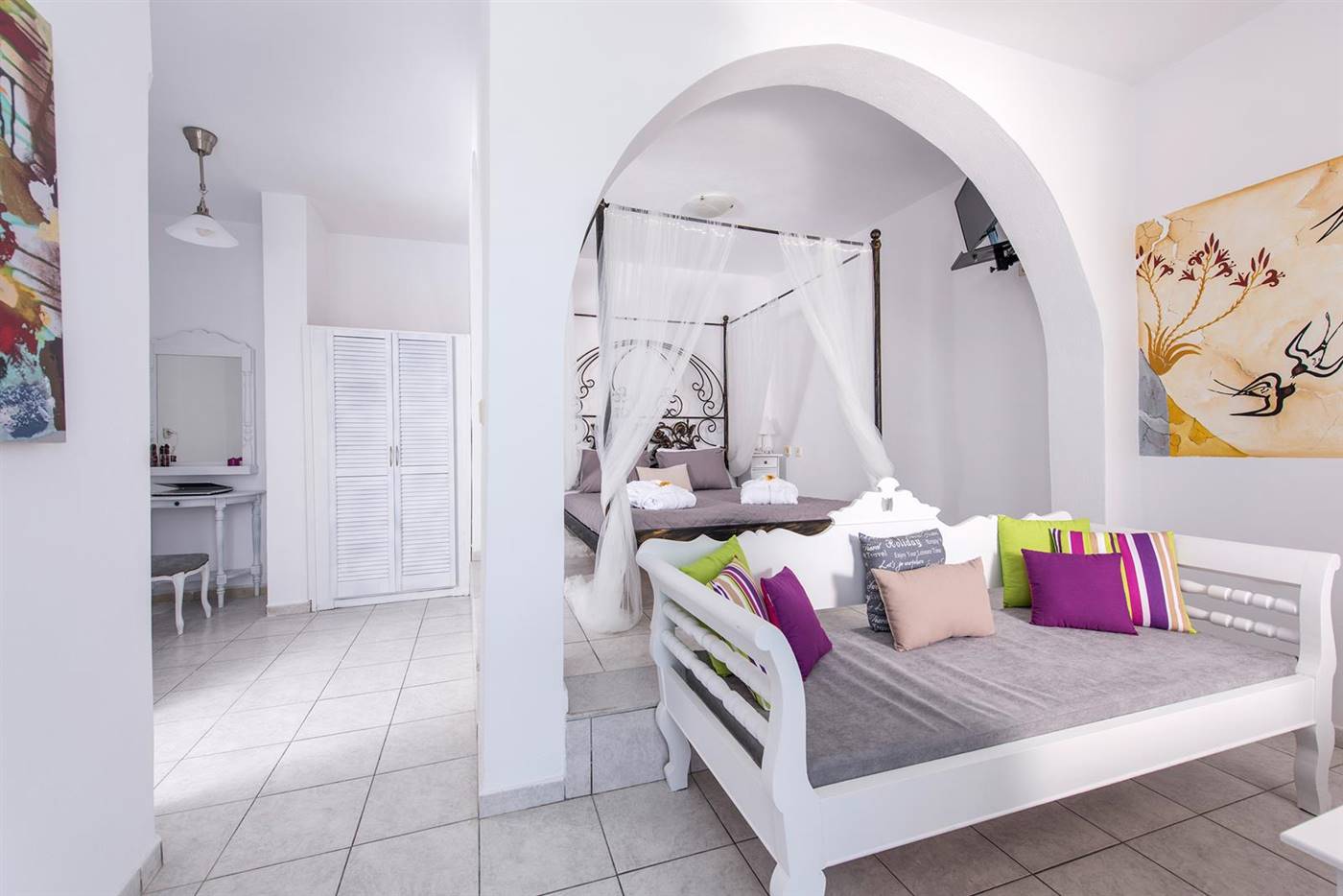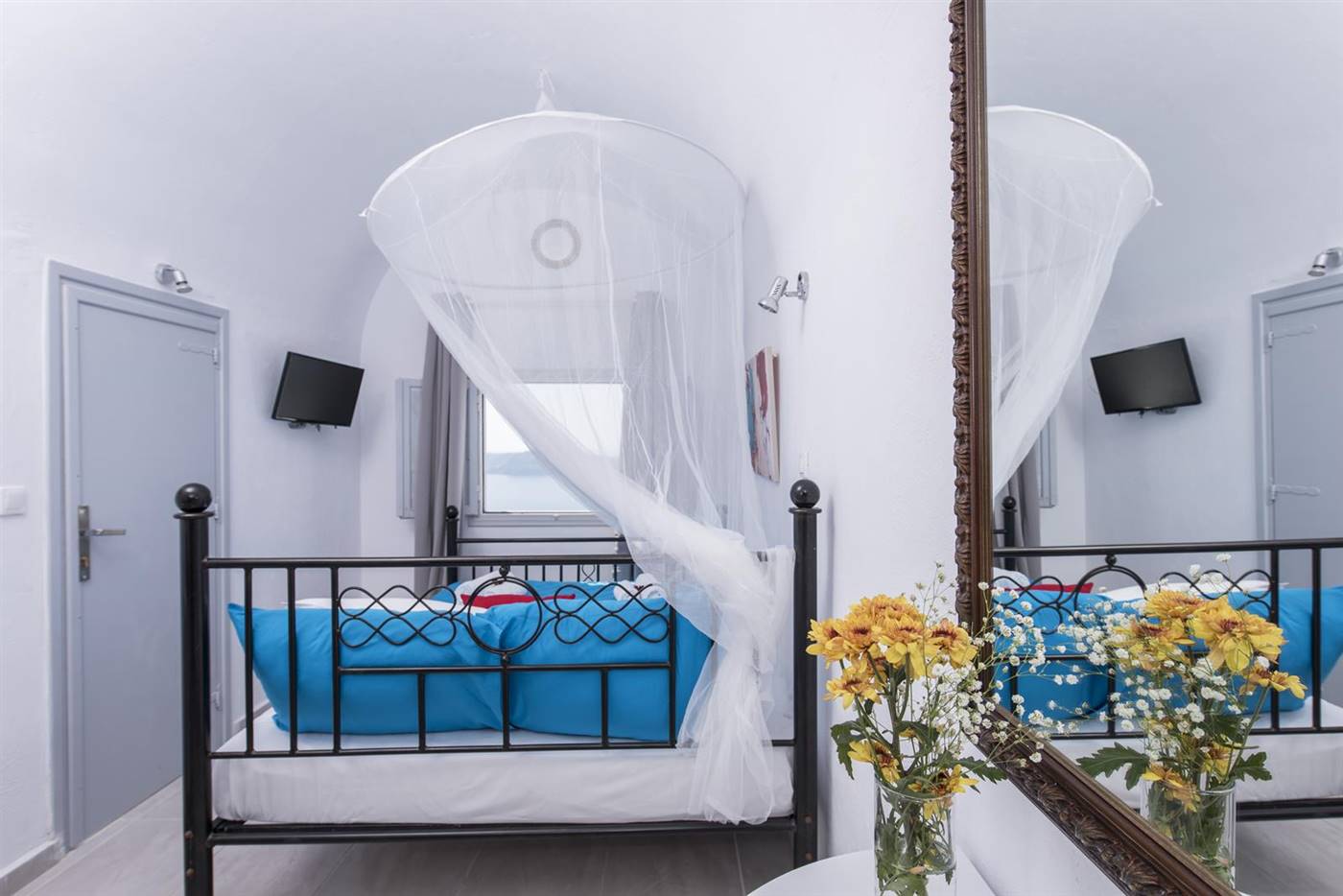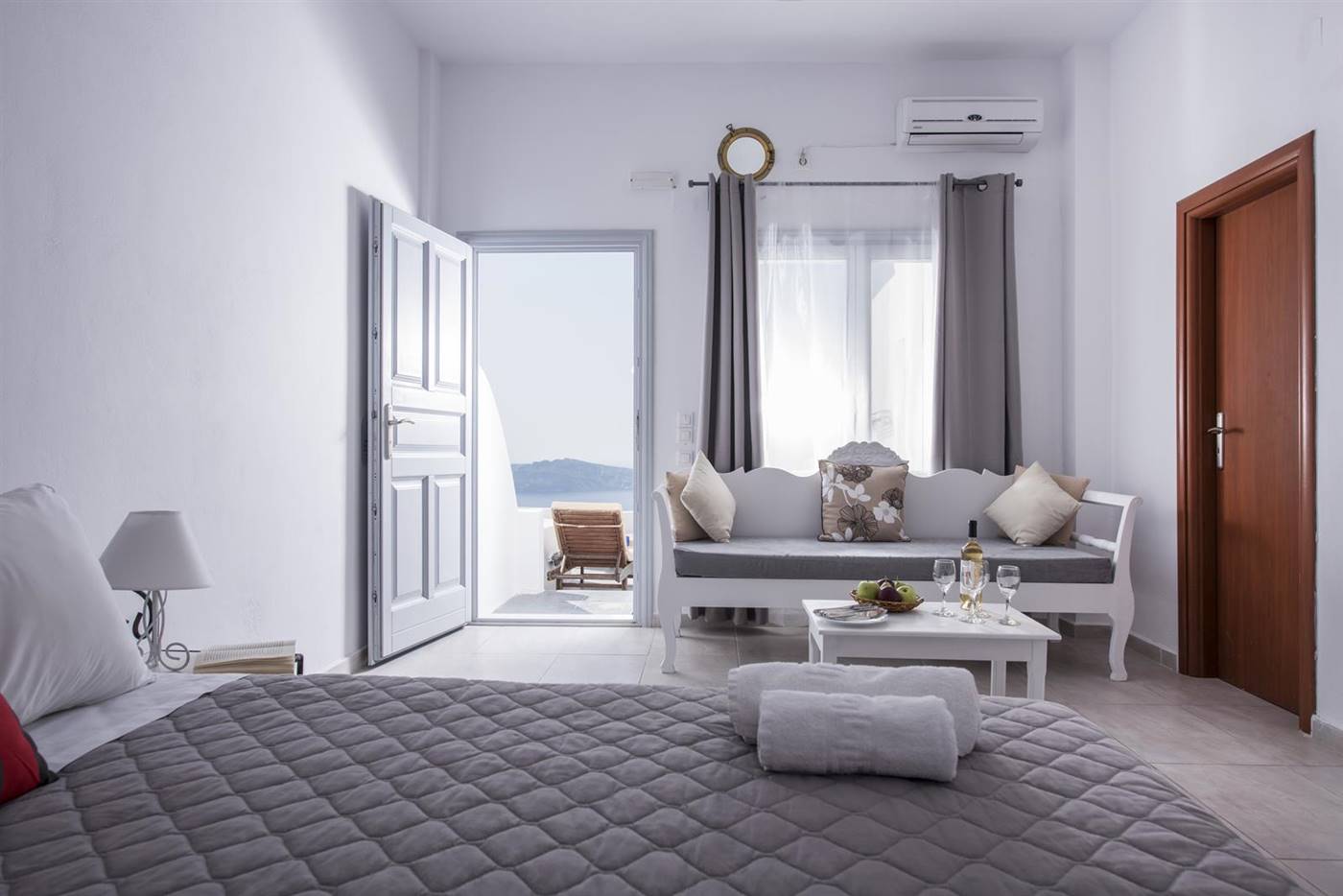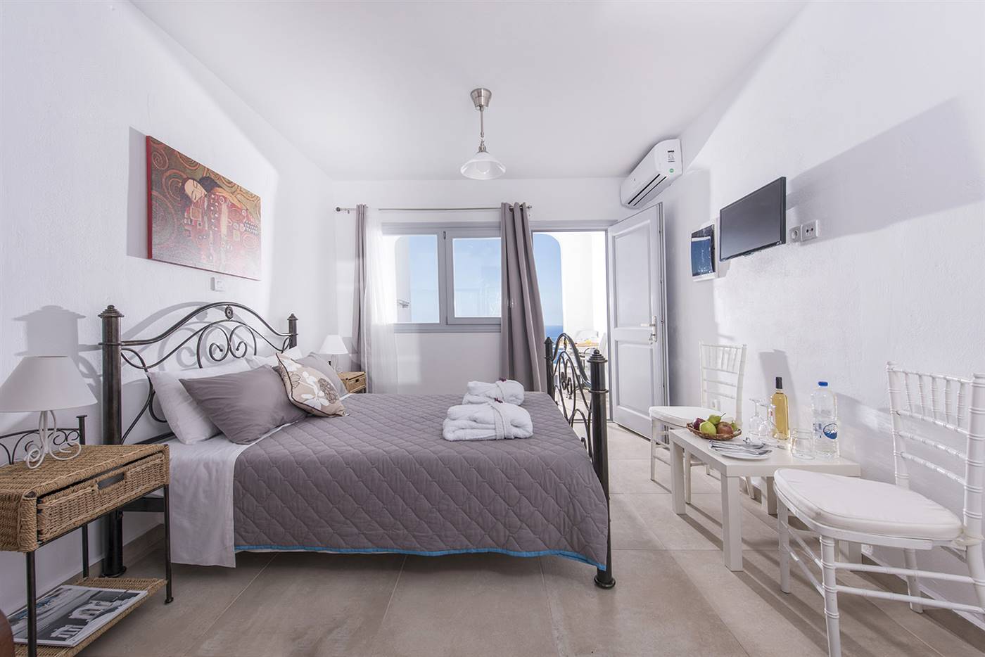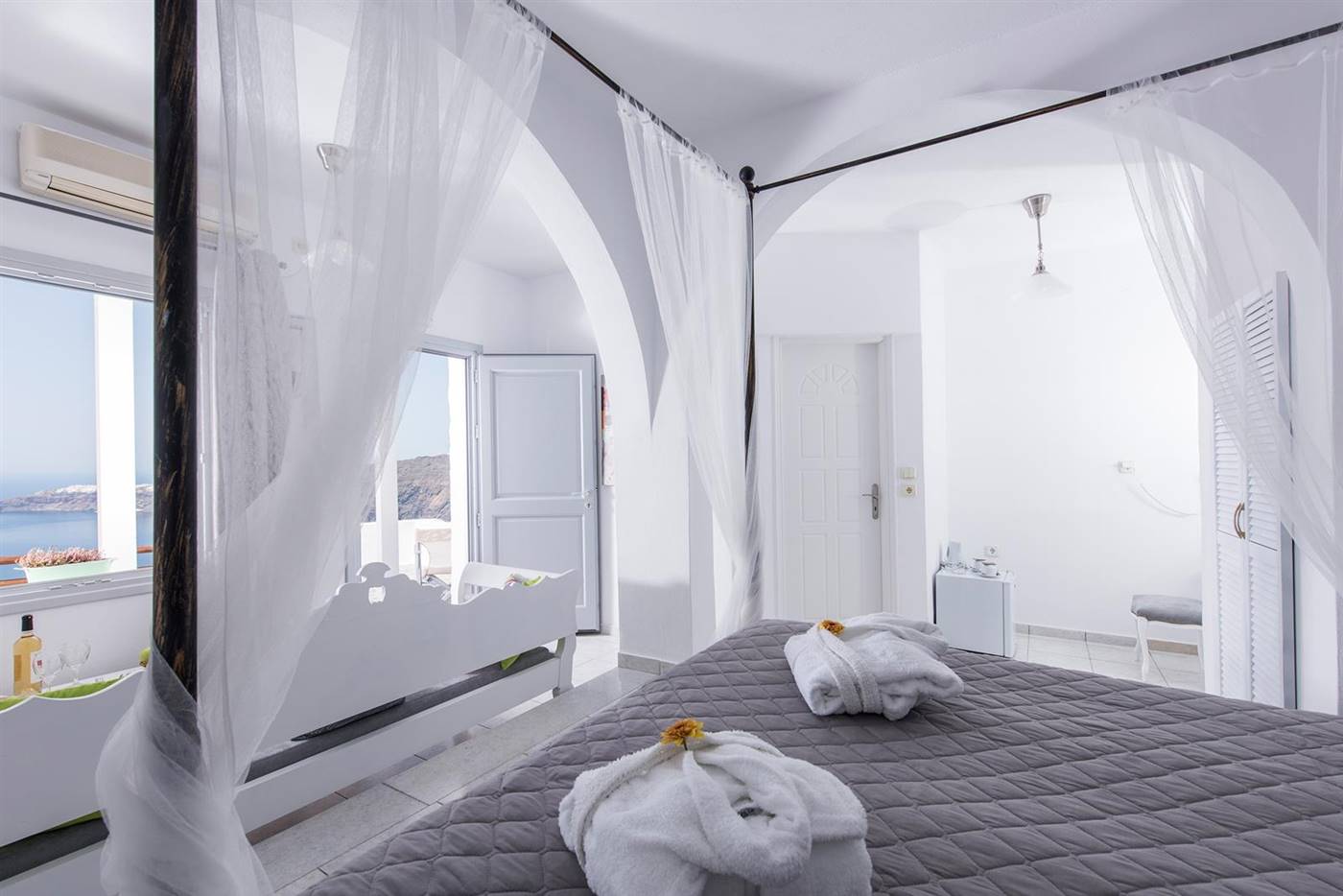 Arredate in stile tradizionale, le camere e le suite vantano una TV satellitare, un asciugacapelli e un balcone privato con splendide viste sulla caldera e sul tramonto.