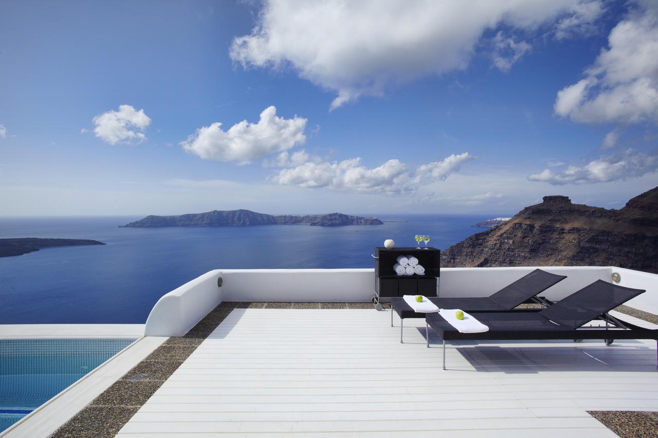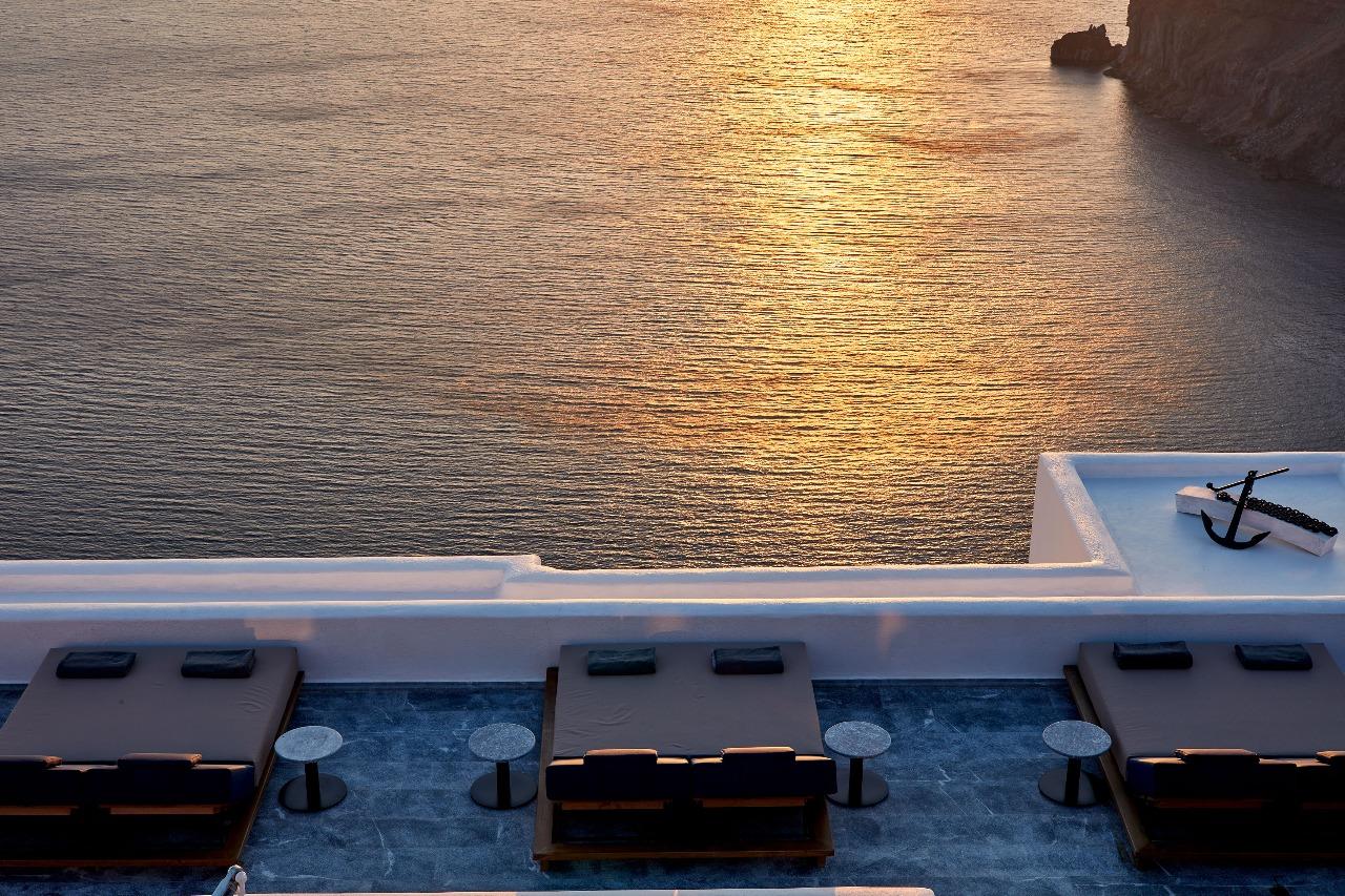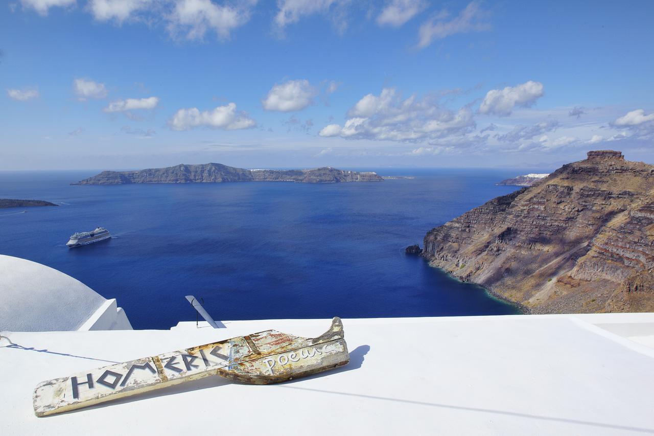 Auf einem Felsen über Firostefani erwartet Sie das preisgekrönte Hotel Homeric Poems mit luxuriösen Unterkünften. Die Boutique-Zimmer sowie der Pool der Unterkunft bieten einen spektakulären Ausblick auf die Caldera.