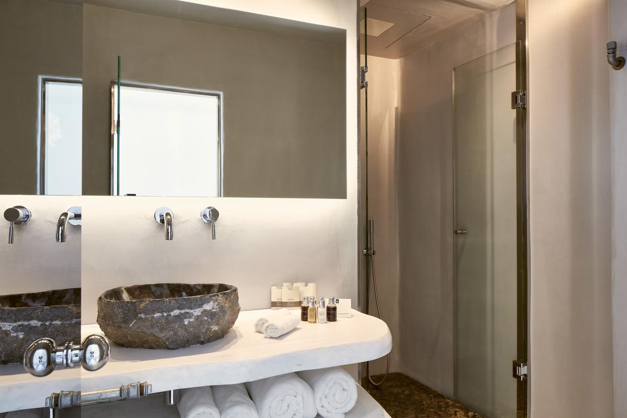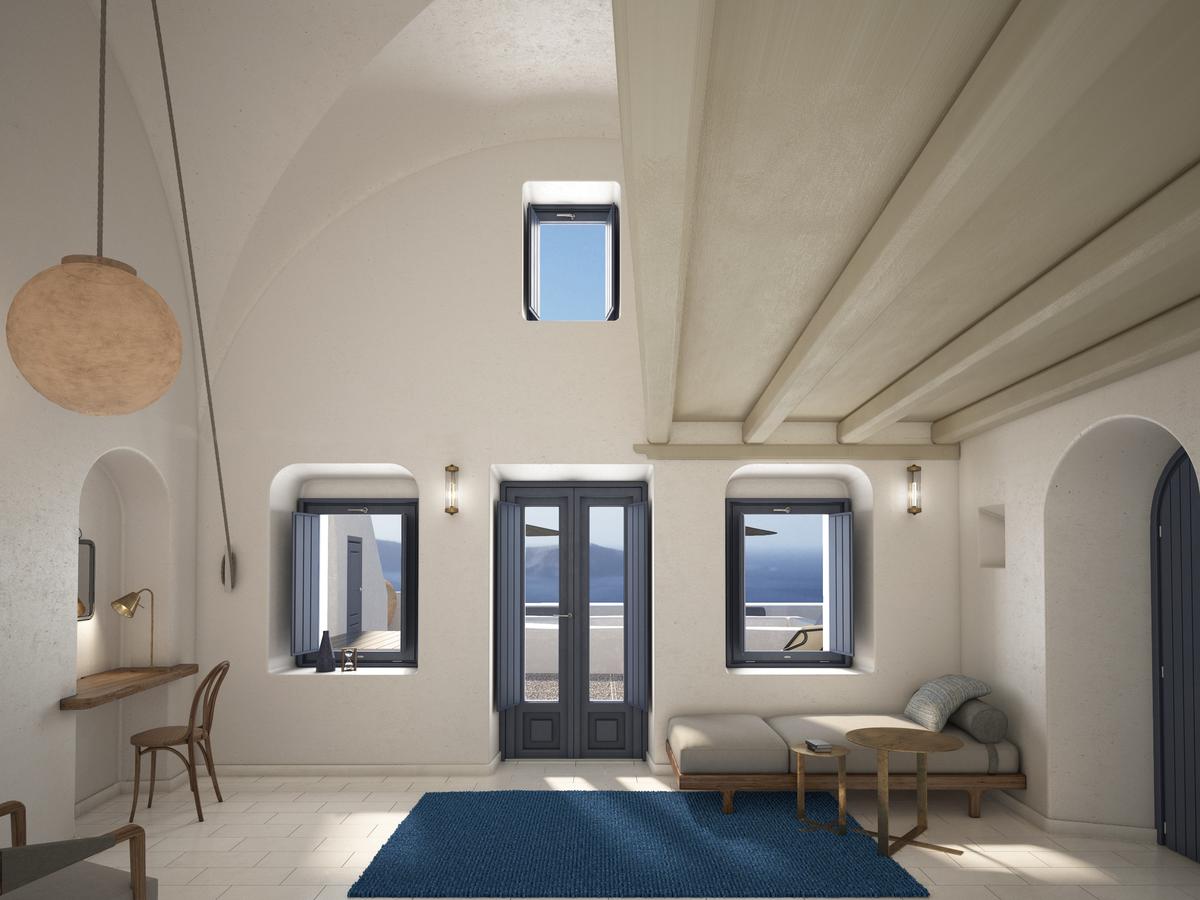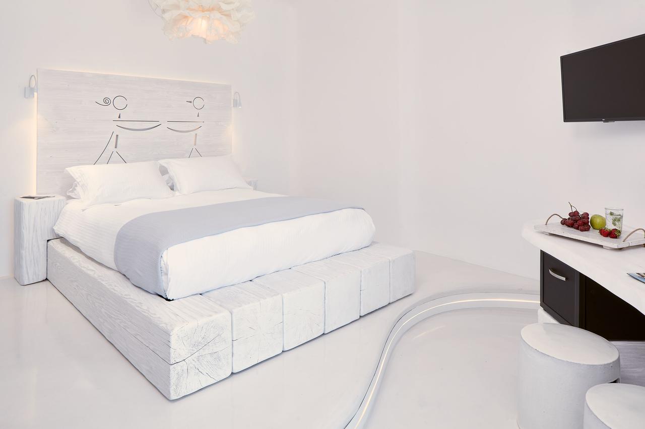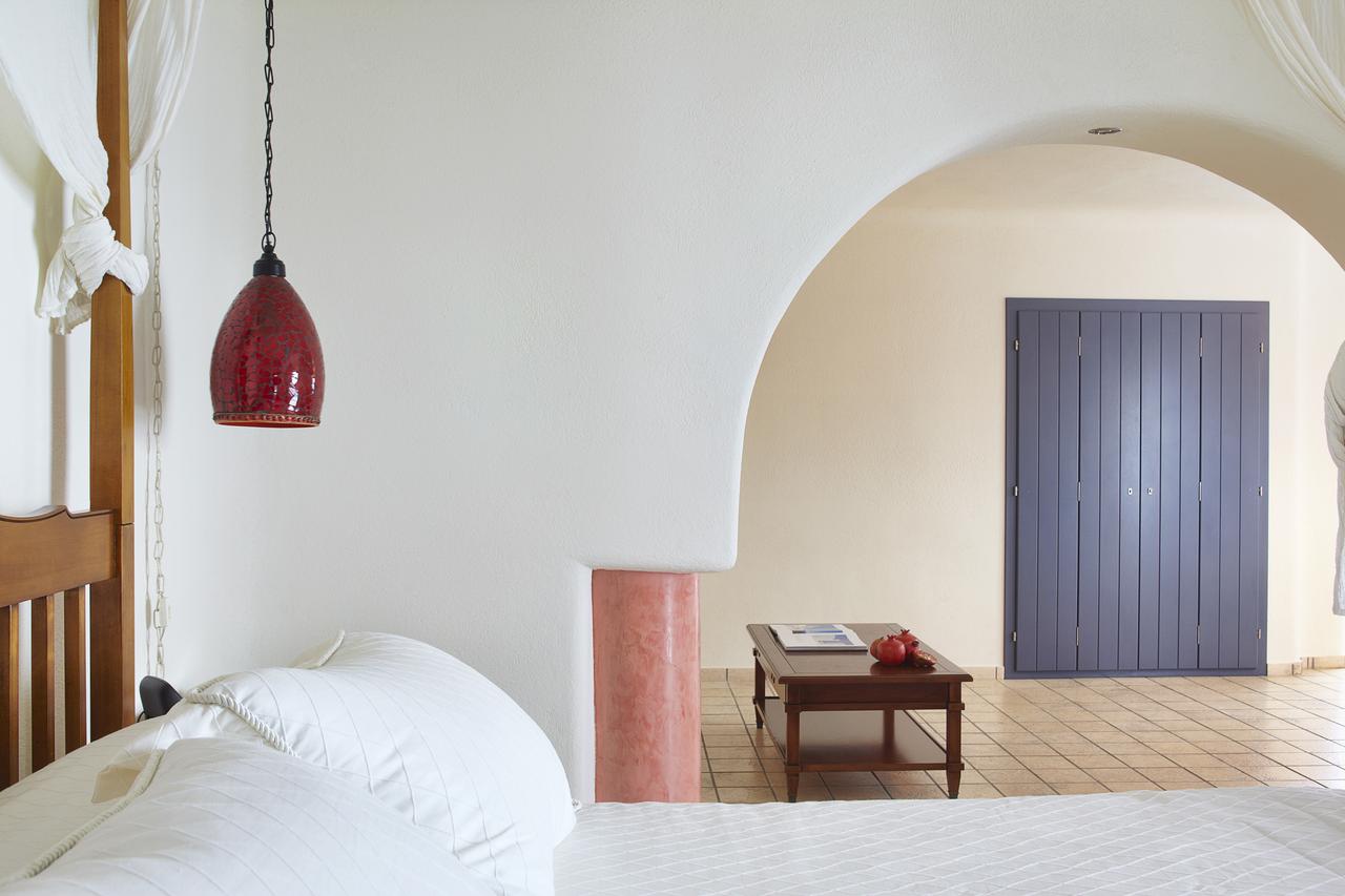 Die Apartments und Suiten im Hotel Homeric Poems sind einfach, aber elegant eingerichtet und in Anlehnung an den traditionellen kykladischen Stil gestaltet. Die Zimmer verfügen über einen komfortablen Sitzbereich.