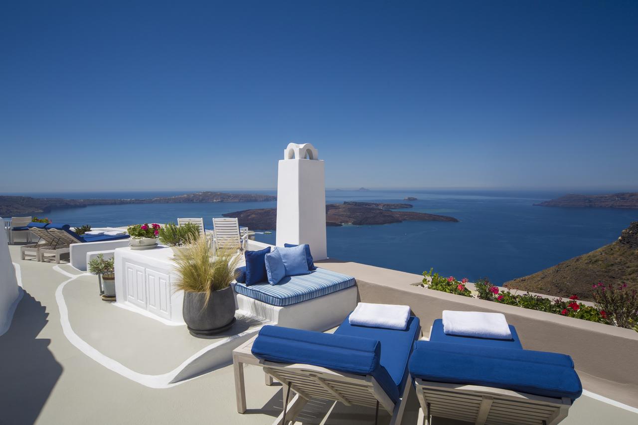 Tutte climatizzate e decorate nello stile locale, le camere e le suite dell'Iconic Santorini offrono un patio affacciato sulla caldera, letti COCO-MAT® completamente naturali, una TV a schermo piatto con canali satellitari, accappatoi, pantofole e set di cortesia Aēsop.