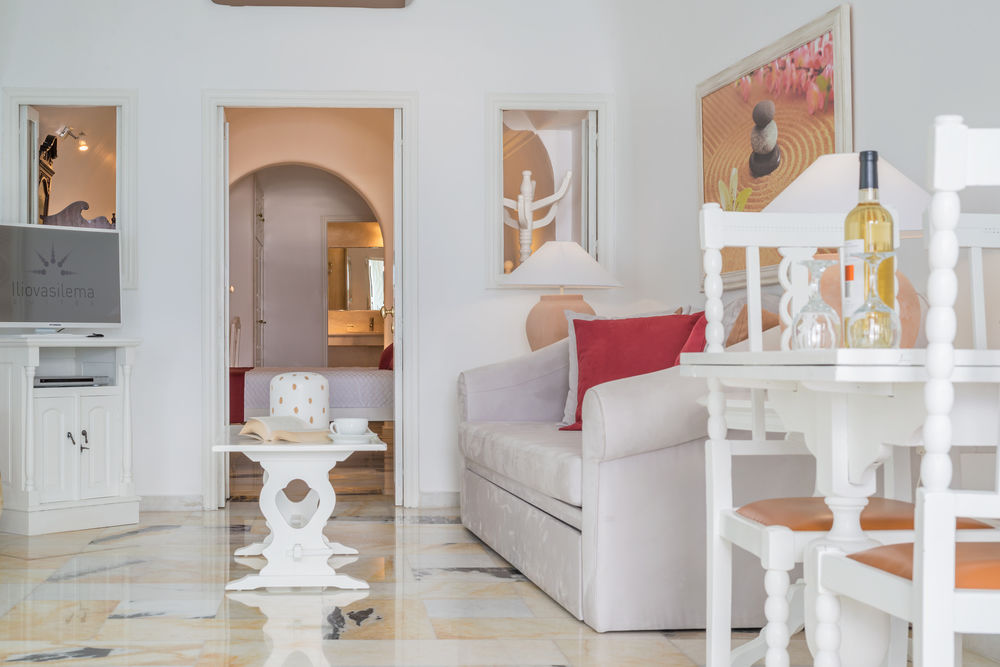 Tutte le camere e le suite dell'Iliovasilema vantano un arredamento elegante e minimalista in moderno stile cicladico, una TV satellitare a schermo piatto, un minibar ben fornito, l'aria condizionata e la connessione WiFi gratuita.