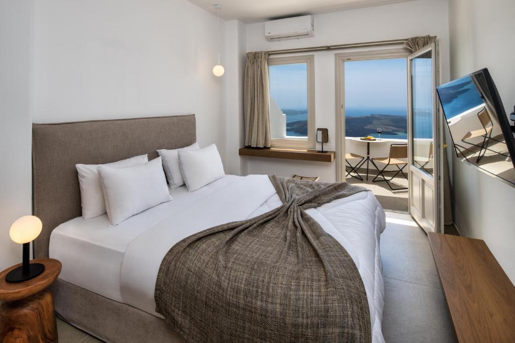 L'Ira offre camere, suite e abitazioni tradizionali con vista sulla caldera, costruite su un cortile con terrazze private. I servizi includono TV a schermo piatto, minibar e aria condizionata. Nei bagni troverete set di cortesia, pantofole e asciugacapelli.