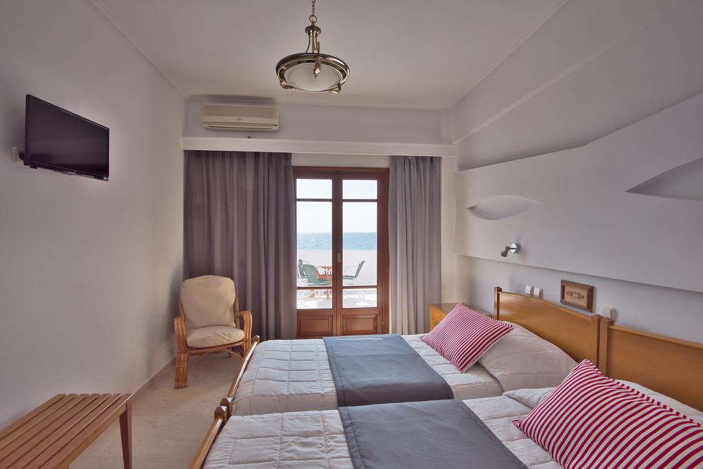 All air-conditioned rooms include a TV with satellite channels and mini fridge. Free toiletries and a hairdryer are provided in the private bathroom. Most units open to a furnished balcony with mountain or Aegean Sea views.