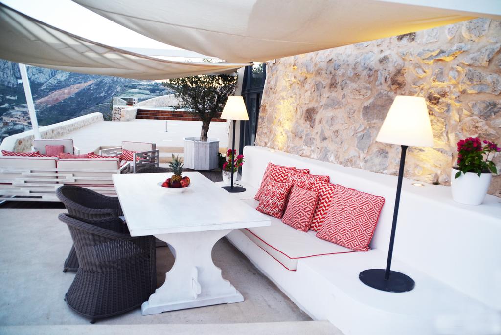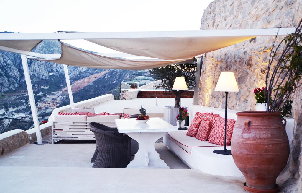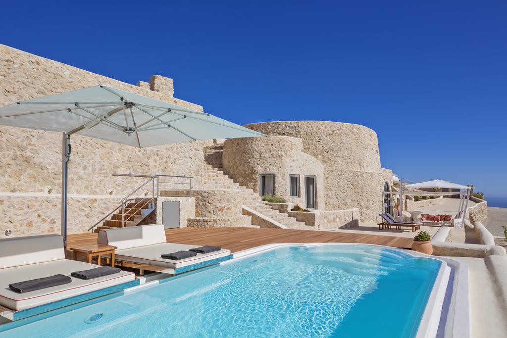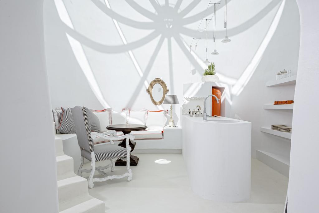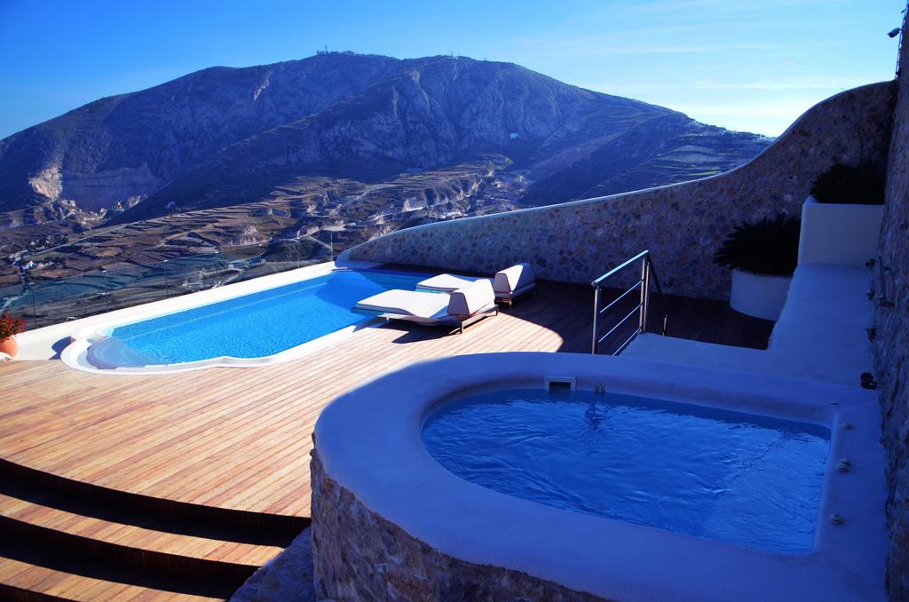 La struttura sorge a 3 km dall'Aeroporto di Santorini, a 6 km dal porto di Athinios e a 2,5 km da Fira, la capitale dell'Isola di Santorini.