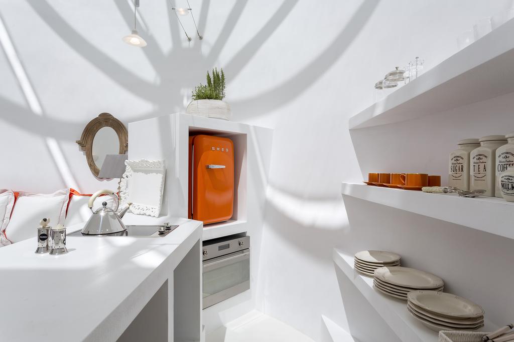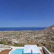 Luminosa, ariosa e arredata in stile moderno, questa unità abitativa dispone di soggiorno con TV satellitare a schermo piatto, cucina ben attrezzata e balcone con vista sul Mar Egeo e sulla caldera.