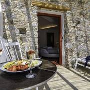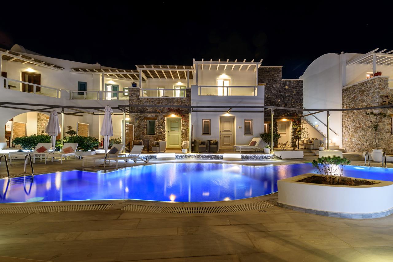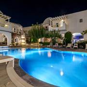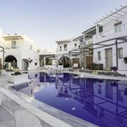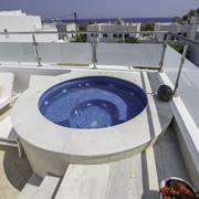Le raffinate sistemazioni combinano perfettamente lo stile tradizionale cicladico con i numerosi comfort moderni, quali Wi-Fi gratuita, TV con lettore CD/DVD e vasca o doccia idromassaggio. L'hotel serve una ricca colazione all'americana a buffet con frutta fresca. Il ristorante in loco propone la cucina tradizionale e specialità regionali, mentre presso il bar a bordo piscina vi attendono drink, snack e caffè.