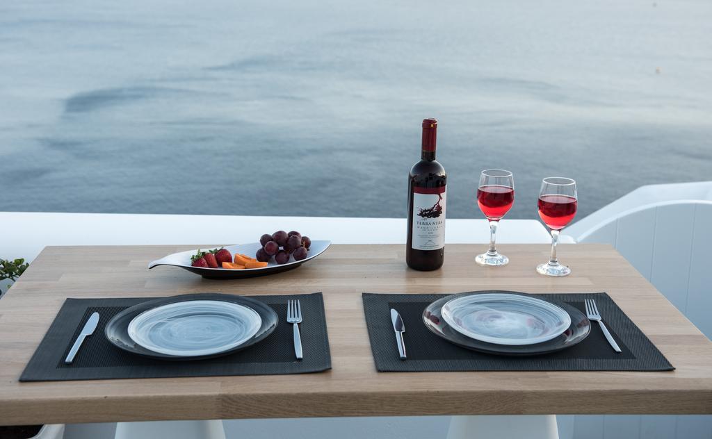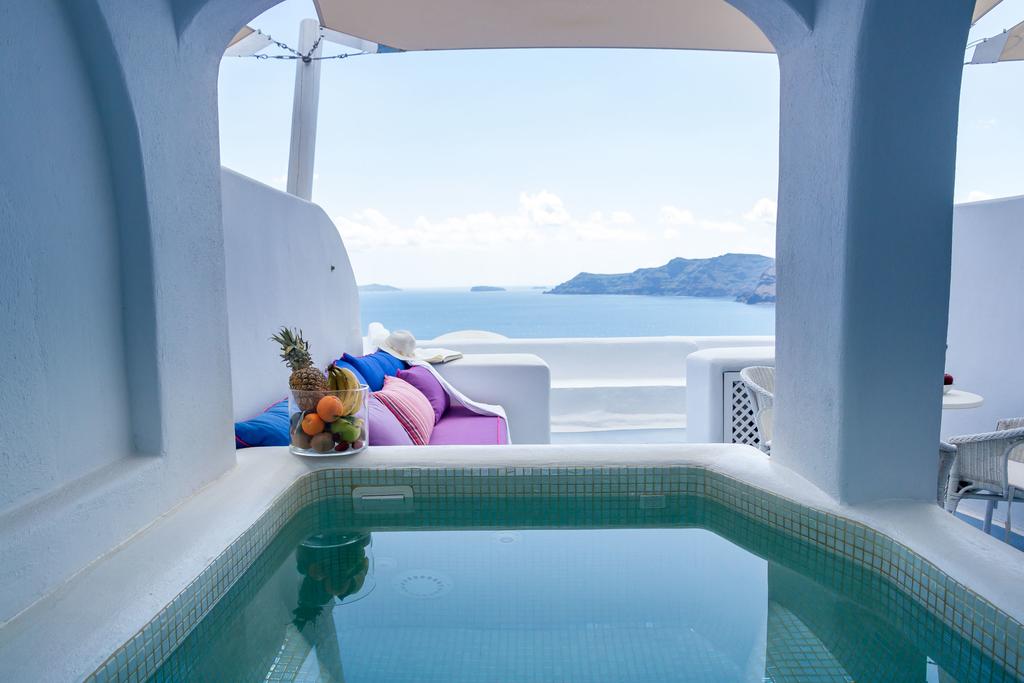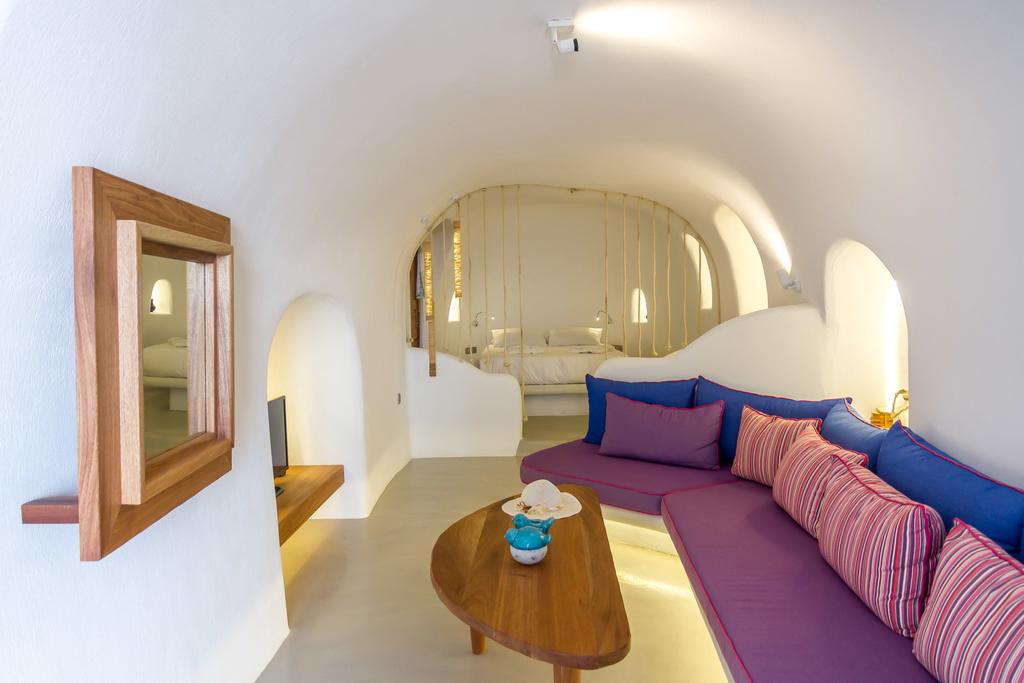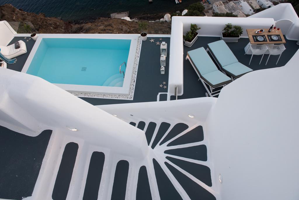 Il complesso si trova a due passi dai negozi e dai ristoranti della zona. Fira, il centro di Santorini, è ubicato a 10 km, l'aeroporto a 20 km e il porto di Athinios a 24 km. Inoltre, la spiaggia di Baxedes dista 2 km e quella di Armeni è raggiungibile in 20 minuti a piedi.
