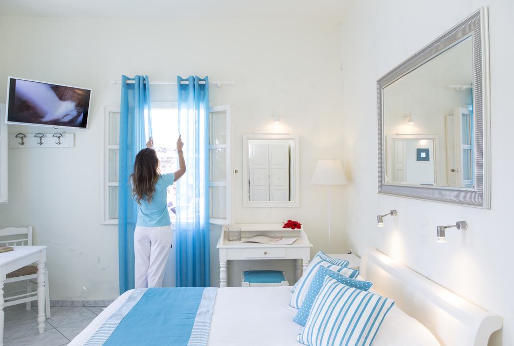 L'edificio sorge in una posizione tranquilla e appartata, ma con un facile accesso alla città di Fira e ai suoi numerosi ristoranti, bar e negozi.