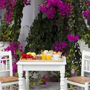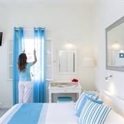 Costruita nel tipico stile architettonico delle Cicladi, la struttura si fonde armoniosamente con le bellezze naturali della zona circostante.