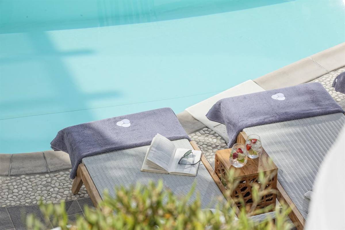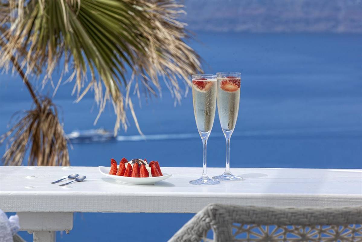 Potrete fare una nuotata rinfrescante in piscina, gustare i pasti presso il premiato ristorante gastronomico Mylos e godervi la colazione nell'area della piscina o nella privacy del vostro balcone.