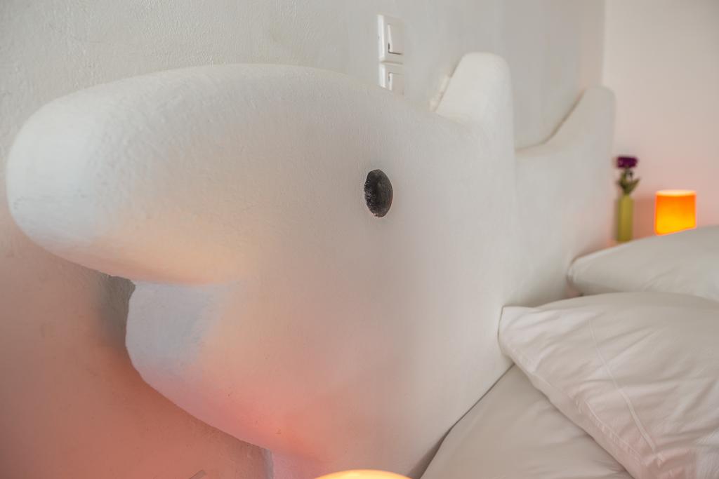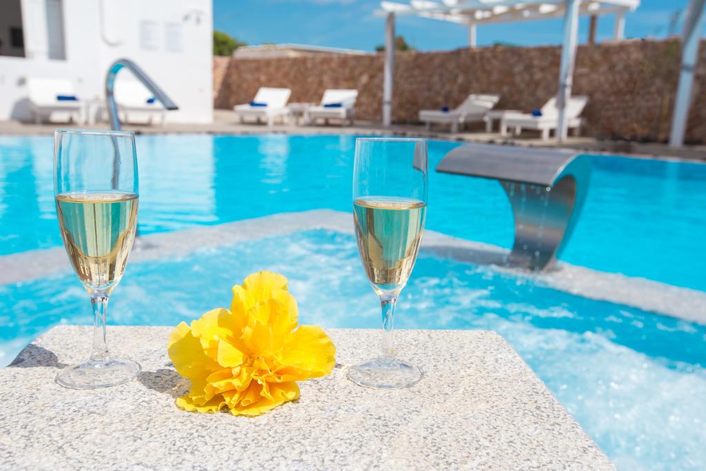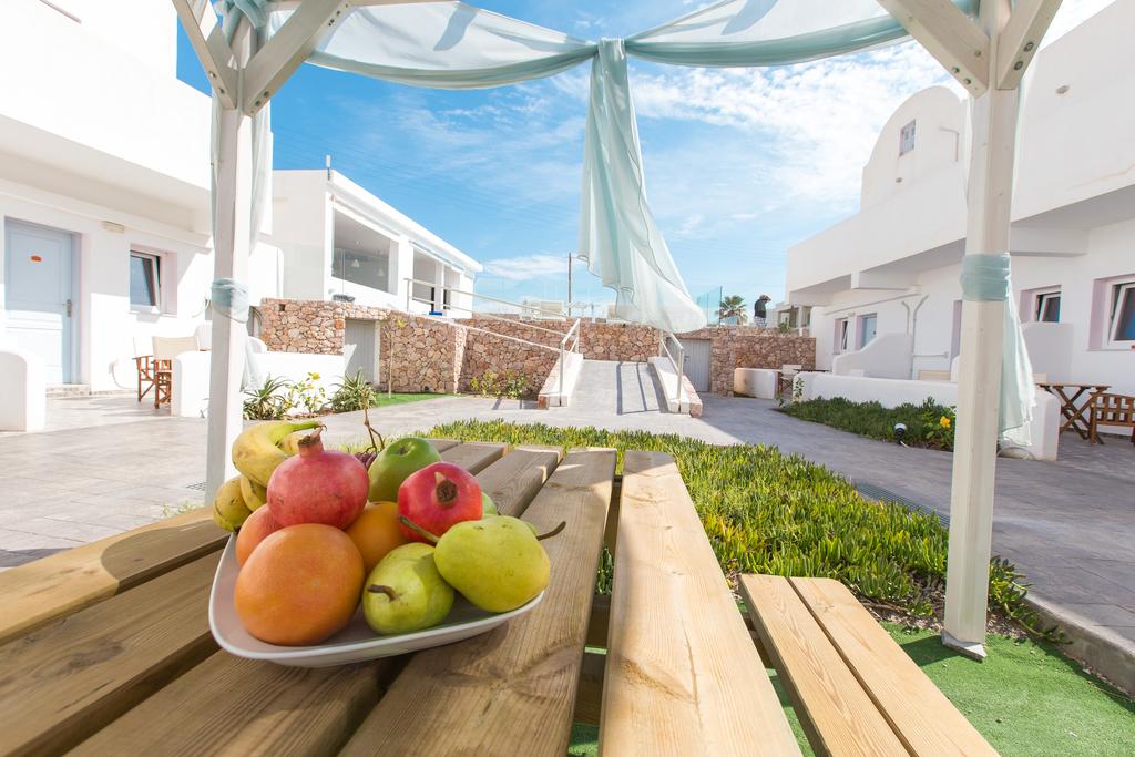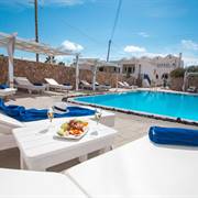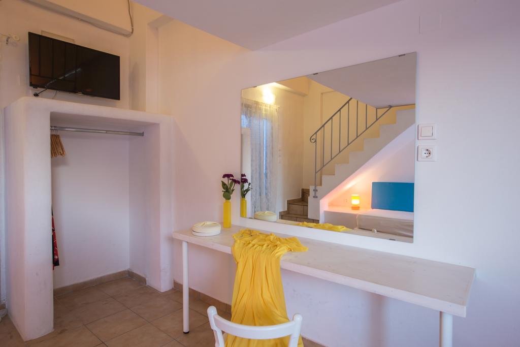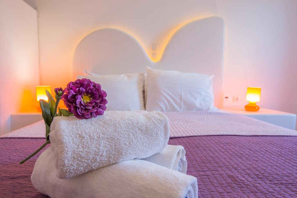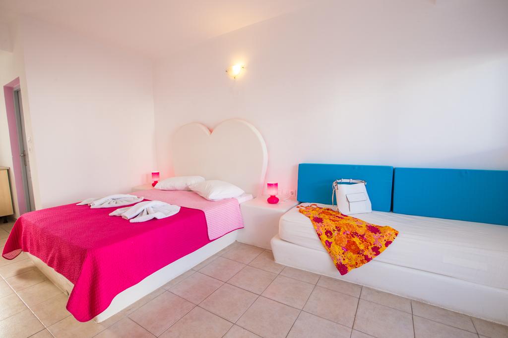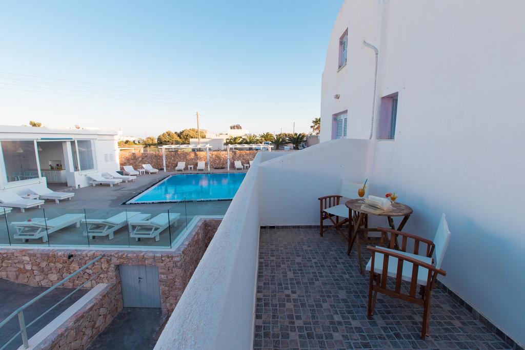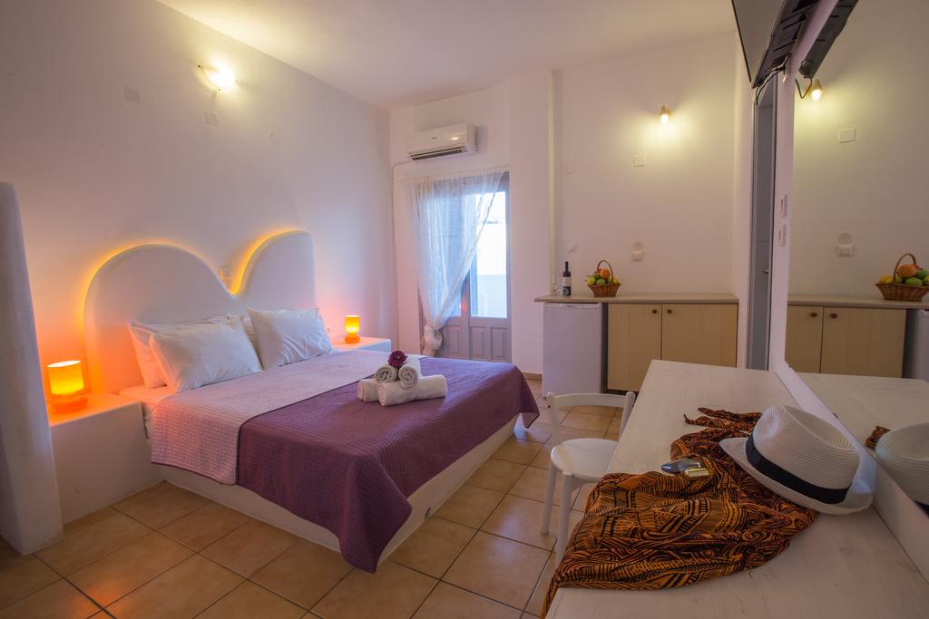Decorate in stile cicladico, tutte le camere sono dotate di tavolini, aria condizionata, mini-frigo, TV a schermo piatto, cassaforte, bagno con doccia e asciugacapelli, e balcone o terrazza.