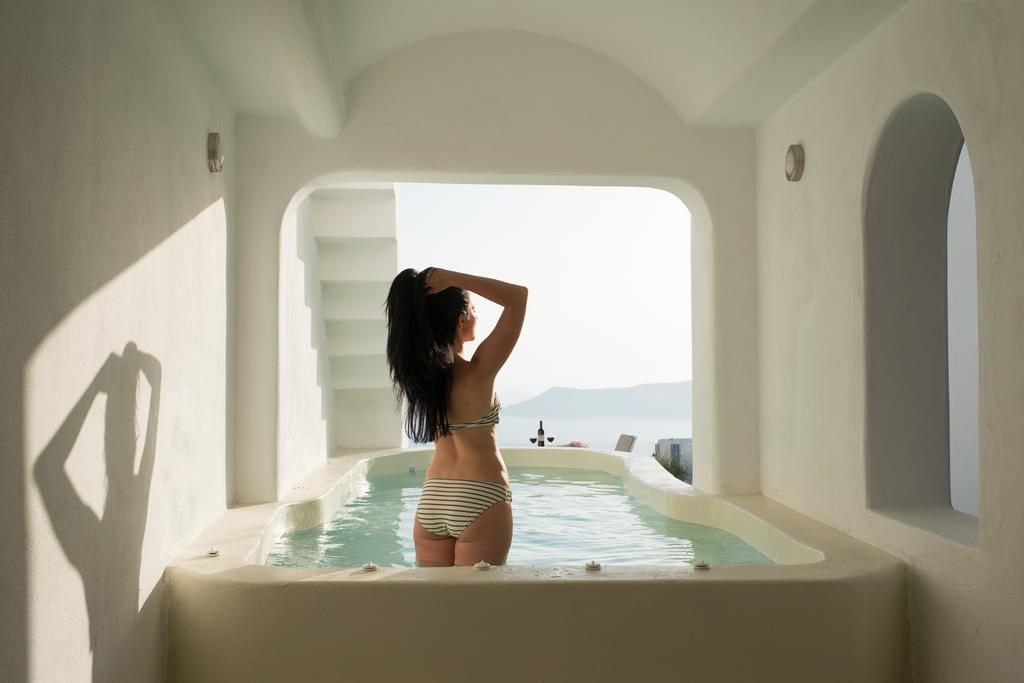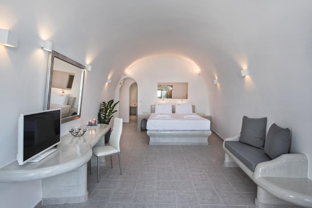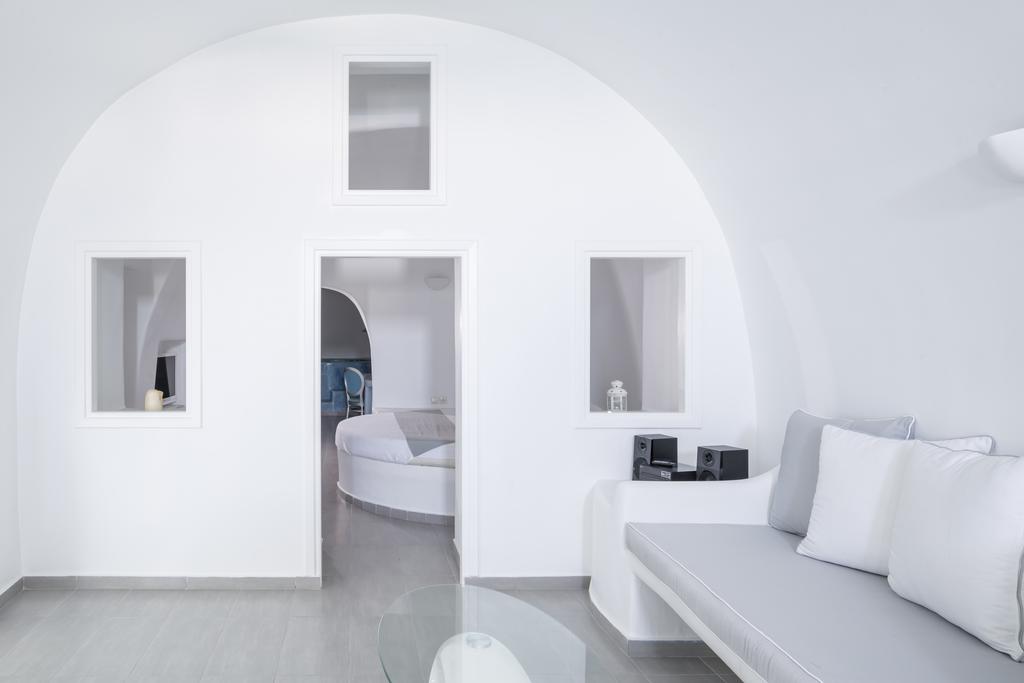 Tutte le suite del Pegasus Suites & Spa presentano ambienti imbiancati a calce, un balcone arredato, l'aria condizionata, un'area salotto con TV satellitare a schermo piatto, un minibar e un bagno privato con set di cortesia e accappatoi, mentre alcune sono provviste di piscina privata, vasca immersione ad acqua fredda o vasca idromassaggio.