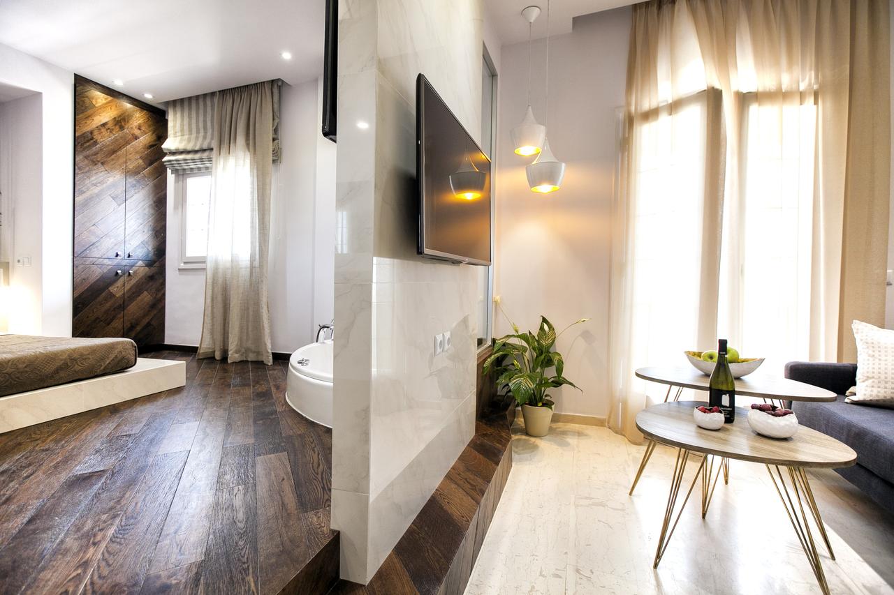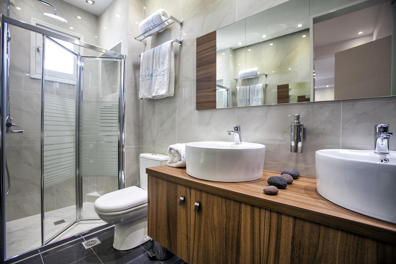 Soleggiate e minimaliste, le sistemazioni di questo complesso in pietra includono un ampio balcone con vista sul mare o sulla piscina, un bagno privato con doccia, una TV satellitare, la connessione WiFi, un frigorifero, l'aria condizionata, porte USB e altoparlanti a muro. Inoltre sono disponibili monolocali con angolo cottura e tavolo da pranzo.