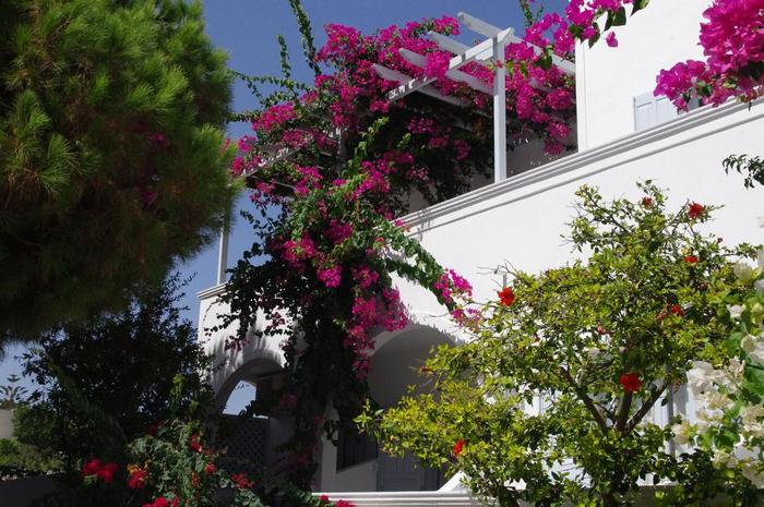 Situati a circa 80 metri dalla spiaggia, la struttura Santorini Houses è in una posizione ideale per chi vuole passeggiare per il resort. Un complesso a conduzione familiare composto da 4 edifici dai nomi caratteristici: Santorini House, Makis, Hara, Ria, che comprendono camere, monolocali e appartamenti. La struttura è situata in una zona tranquilla, molto vicino alla spiaggia e a tutti i ristoranti e bar. La sua comoda posizione, il suo splendido giardino fiorito e l'atmosfera amichevole offrono un soggiorno piacevole. Tutte le camere sono dotate di frigorifero, A / C, servizi privati, balcone o terrazza. Anche gli  Studios sono completi di angolo cottura, A / C, frigo, bagno privato, balcone o terrazza. La struttura dispone di reception (a Alitana Boutique Hotel - accanto), cassetta di sicurezza, giardino. Tutti i clienti possono utilizzare anche la piscina e le strutture per il relax di Alitana Boutique Hotel.