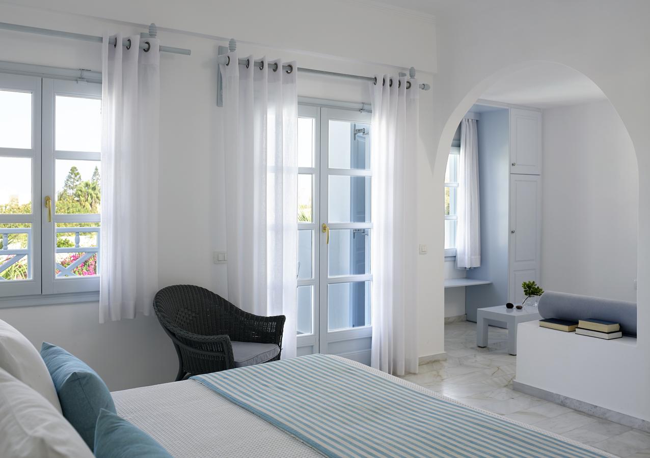 Il resort dista 4 km dall'aeroporto internazionale di Santorini, 10 km dal porto di Athinios e 10 km da Fira, la principale città dell'isola. Le rovine dell'antica Thira giacciono su una collina situata a breve distanza dall'hotel.