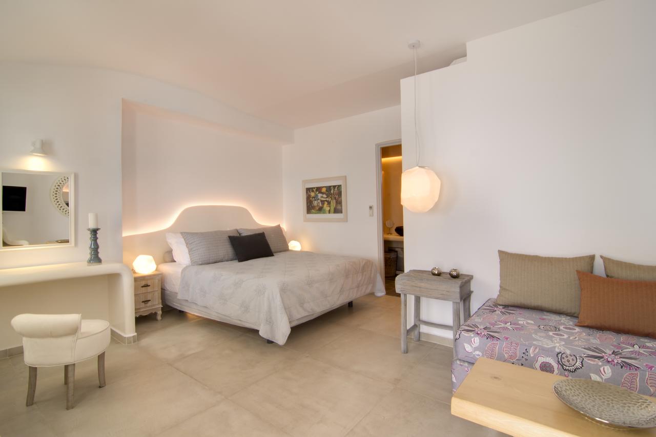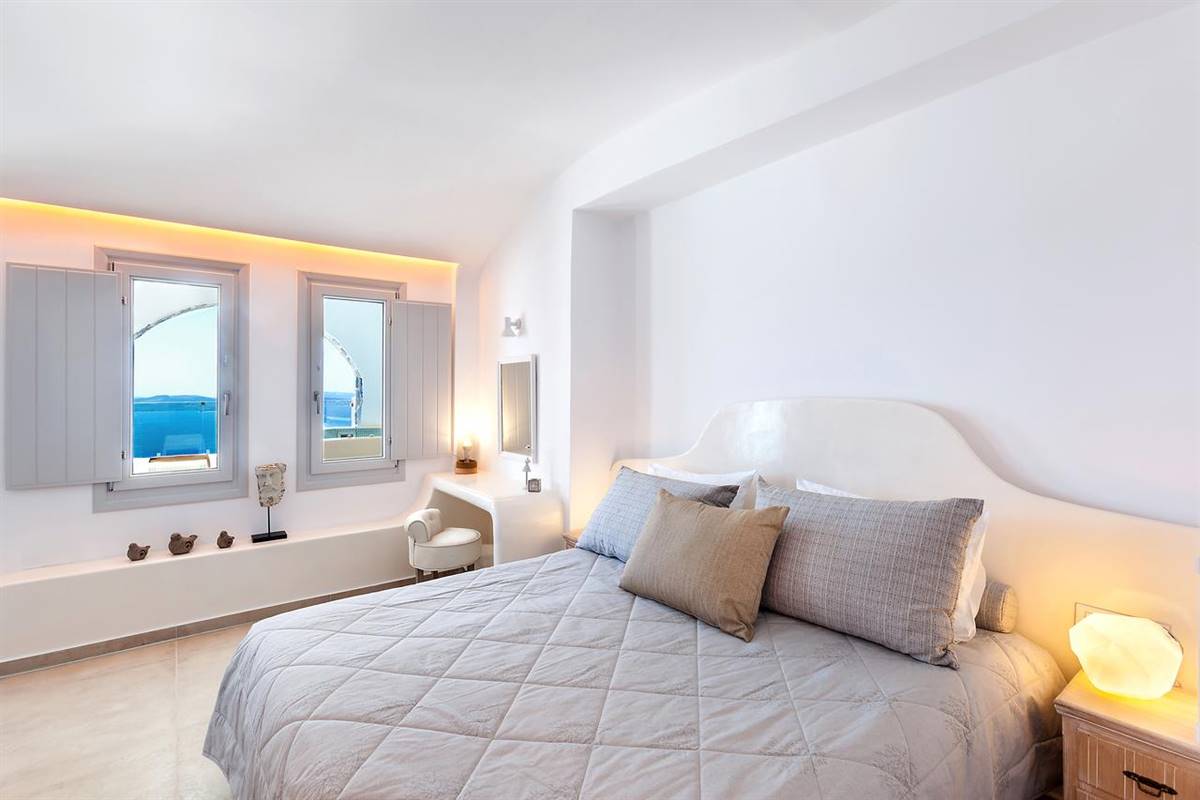Gli interni delle suite presentano un'autentica architettura cicladica, combinata con arredi contemporanei e boho-chic, un balcone privato con vista incontrastata sulla Caldera e sul vulcano, un bagno privato con set di cortesia, una vasca idromassaggio all'aperto, la connessione WiFi gratuita, un'area salotto e un letto king-size dotato di lenzuola di design e di materasso firmato Secret. Al mattino vi attende un'abbondante colazione continentale.