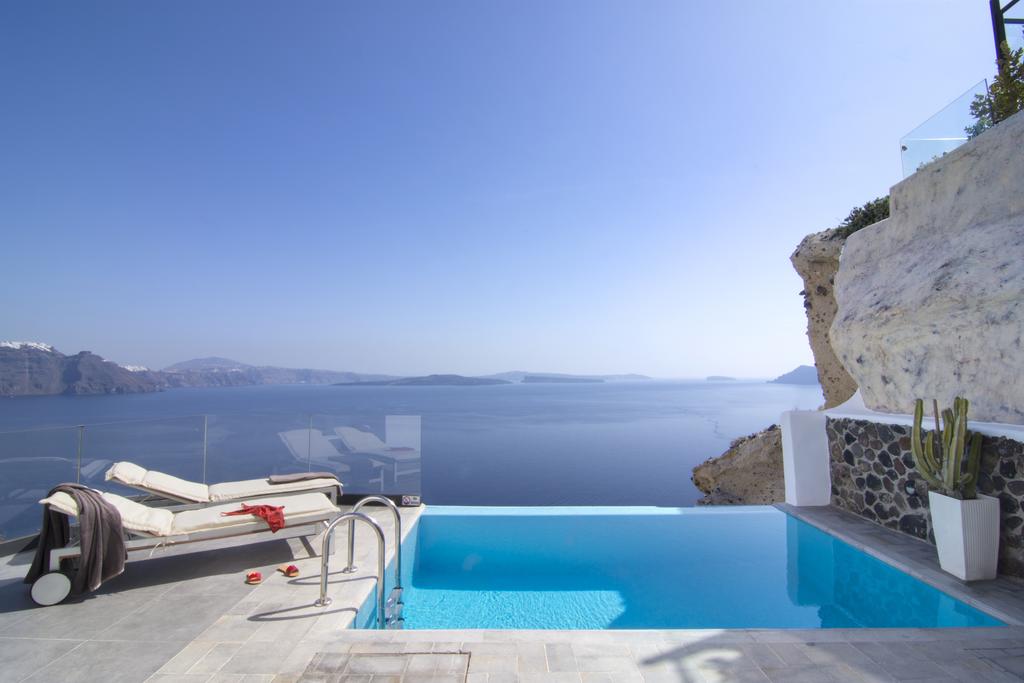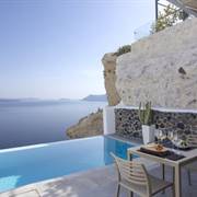 Arroccato sulle rocce vulcaniche di Oia, il Santorini Secret Suites & Spa è un boutique hotel a 5 stelle che offre suite con magnifiche viste sulla caldera e sul vulcano.