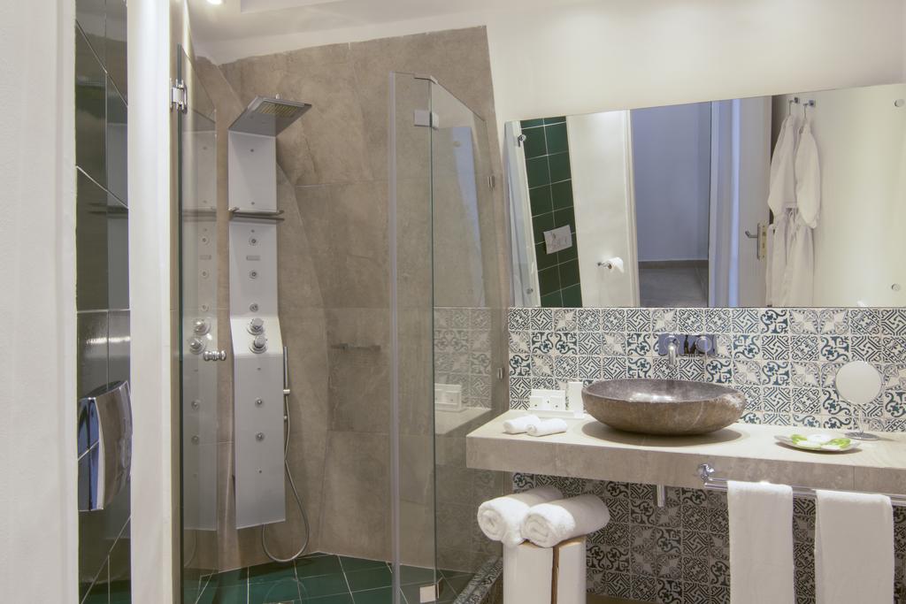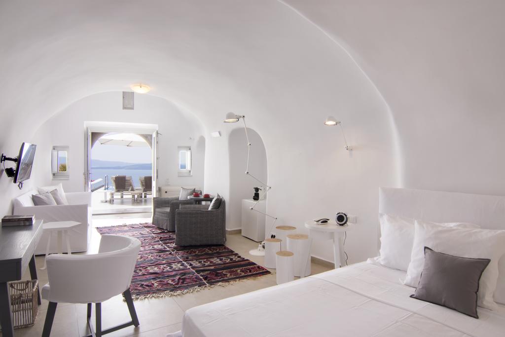 Caratterizzate da una spaziosa terrazza completa di piscina privata all'aperto o di vasca idromassaggio, tutte le sistemazioni del Santorini Secret Suites & Spa presentano arredi minimalisti che rispettano lo stile delle Cicladi. Avrete a disposizione un'area soggiorno, una TV a schermo piatto e l'aria condizionata, e ogni bagno presenta cosmetici VIP, accappatoi e pantofole. Non manca infine un set per la preparazione di tè e caffè.