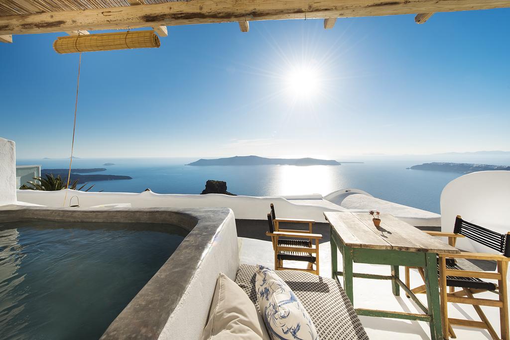 Il Sophia Luxury Suites si trova a Imerovigli, a 350 metri sopra la caldera, ed è costruito secondo i canoni dell'architettura tradizionale del posto. Offre eleganti sistemazioni arredate con gusto e dotate di vasca idromassaggio e connessione WiFi gratuita e la colazione tipica greca à la carte ogni mattina.