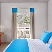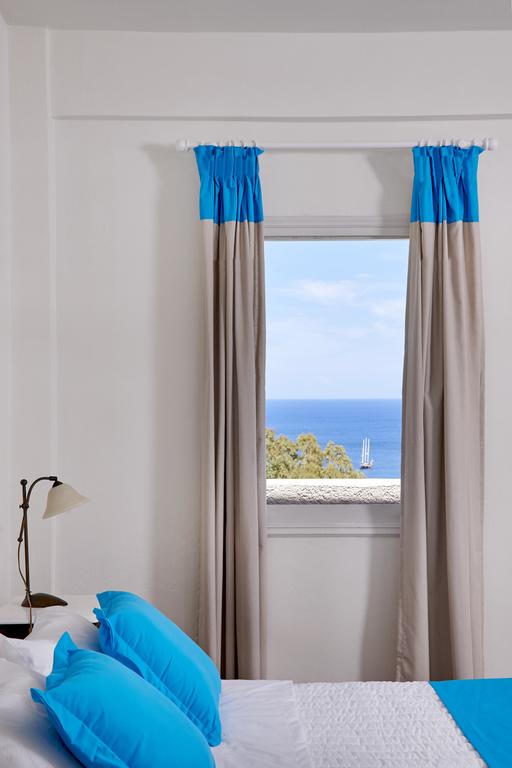 Le sistemazioni includono letti in ferro, la vista sul Mar Egeo, una TV, una cassaforte, l'aria condizionata, e, in alcuni casi, una cucina o un angolo cottura con fornelli, bollitore elettrico e macchina per il caffè.