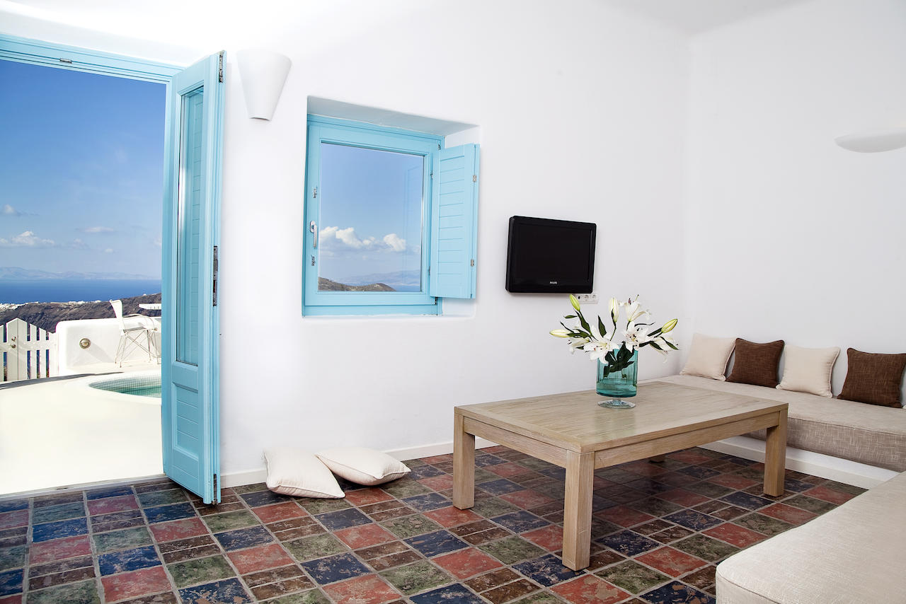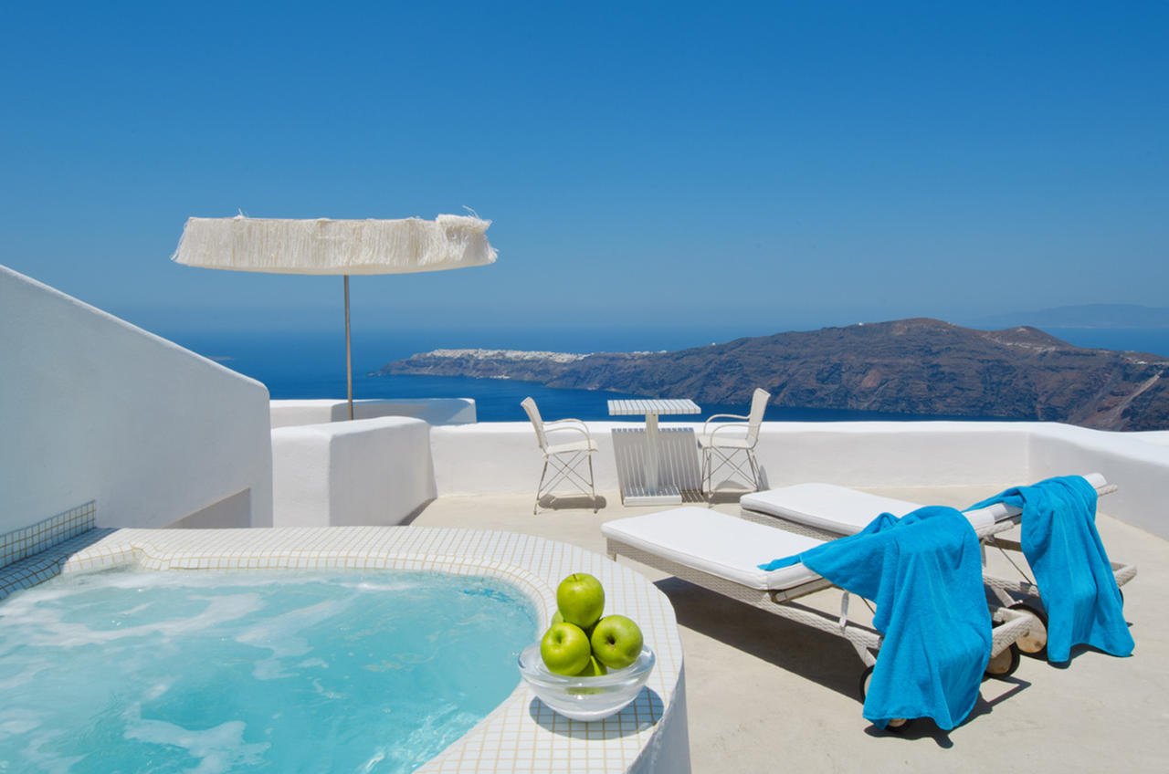 Costruito su 3 livelli, il complesso del White vanta alcune delle più grandi terrazze private di Santorini, la maggior parte con piscina privata o vasca idromassaggio. Il White Santorini Suites & Spa offre eleganti suite, ognuna con un soggiorno separato e un lussuoso bagno.