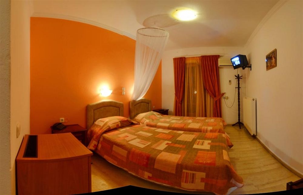 Le camere dell'Hotel Aretousa sono arredate con gusto. Dispongono di balconi privati, di aria condizionata e di una TV satellitare.