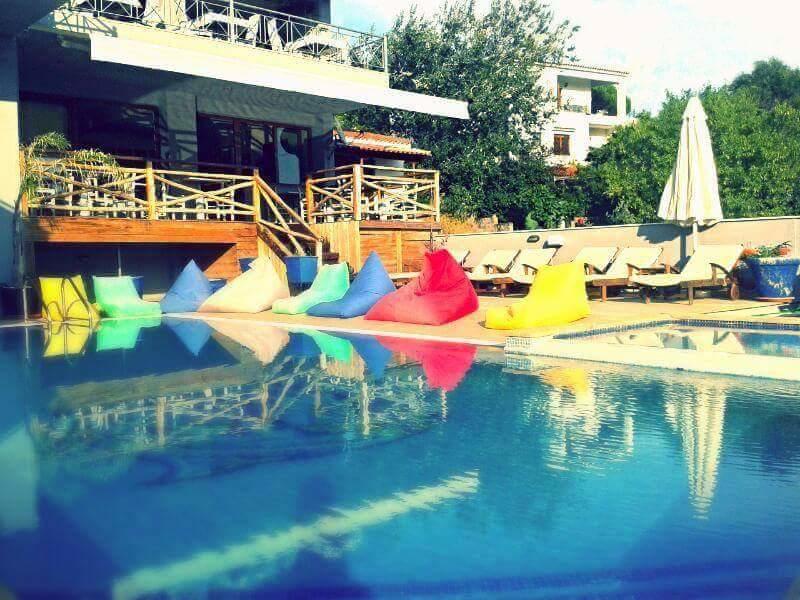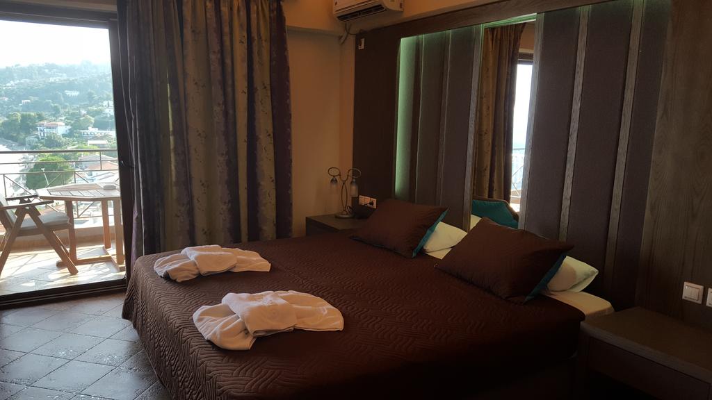 Ubicato a Sciato, a pochi passi dalla spiaggia e a 900 metri dal Papadiamantis House Museum, l'Aria offre una piscina all'aperto, un ristorante e sistemazioni con vista sulla piscina e sul giardino.