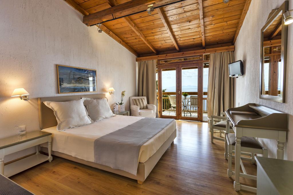 Ogni mattina viene allestita una colazione a buffet nella zona ristorazione dell'hotel. Il ristorante propone piatti della cucina greca, da gustare nell'elegante ambiente interno o nell'area esterna, affacciata sul mare, mentre il bar a bordo piscina serve tutto il giorno snack e cocktail.