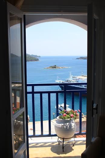 La casa si trova su una piccola collinetta appena sopra il porto, una ventina di metri dalla chiesa di Agios Nikolaos, uno dei migliori punti panoramici di Skiathos .