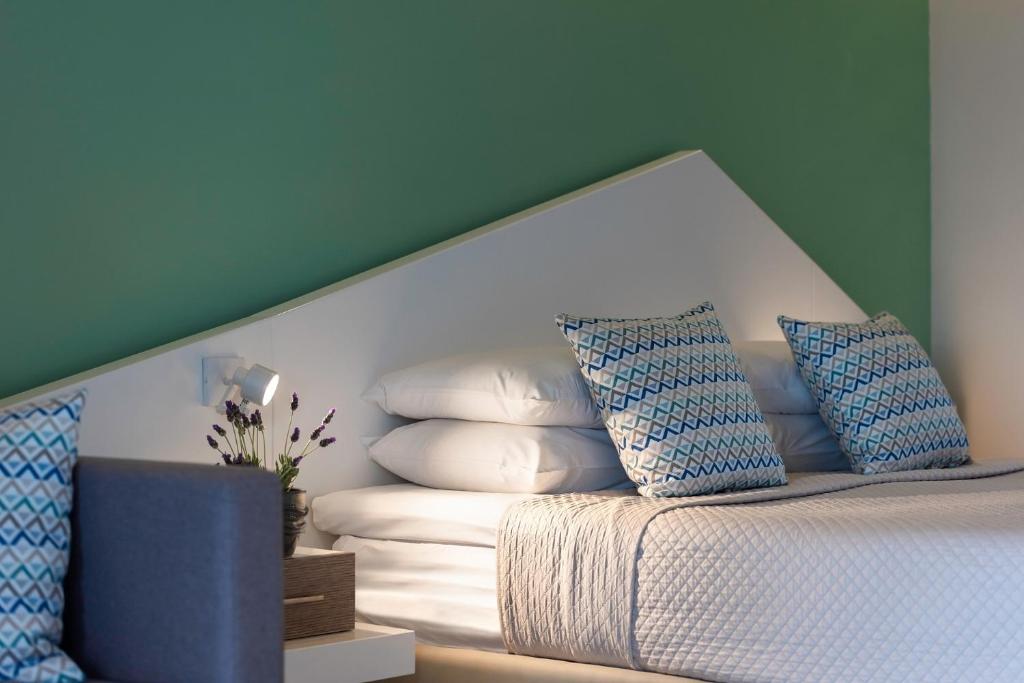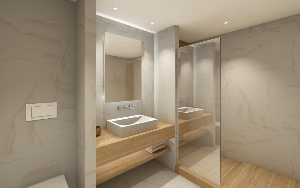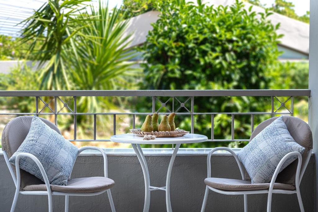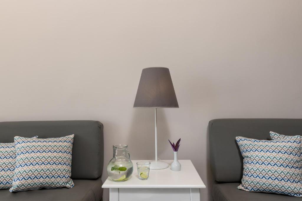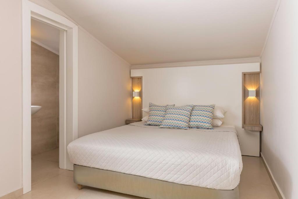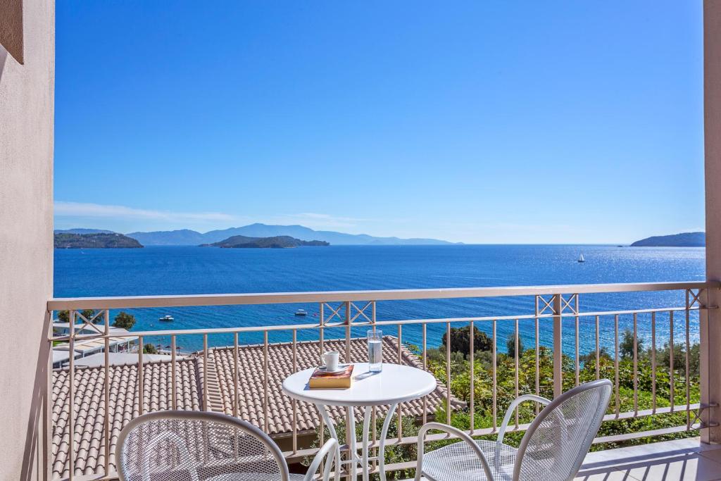 Tinteggiate in tonalità tenui, le camere e le suite sono dotate di arredi in stile contemporaneo, balcone o terrazza con mobili da esterno, vista sul Mar Egeo, sulla piscina o sui giardini, aria condizionata, TV LCD con canali satellitari, connessione WiFi gratuita e bagno moderno con pantofole e set di cortesia. Alcune presentano una piscina privata o una vasca idromassaggio.