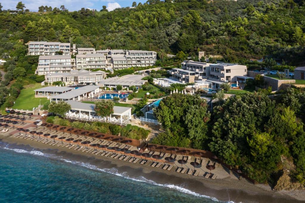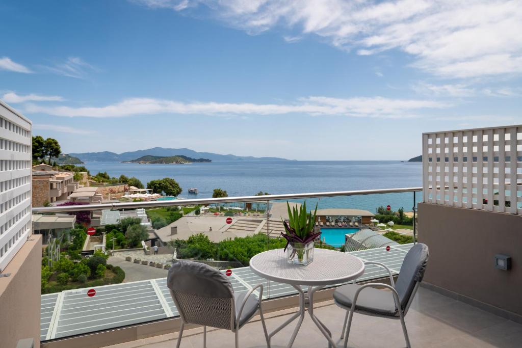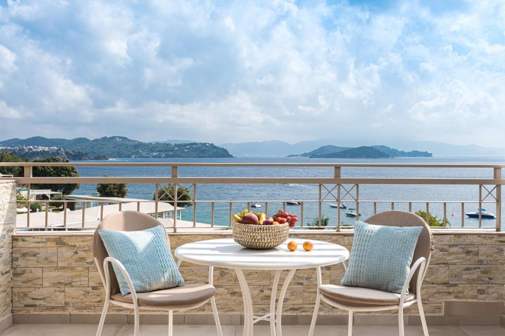 Provvisto di un parcheggio gratuito all'aperto, il Kassandra Bay Resort, Suites & Spa dista appena 3 km dalla città di Skiathos, 4 km dal suo aeroporto nazionale e 10 km dalla famosa spiaggia di Koukounaries e dai suoi bar sul mare.