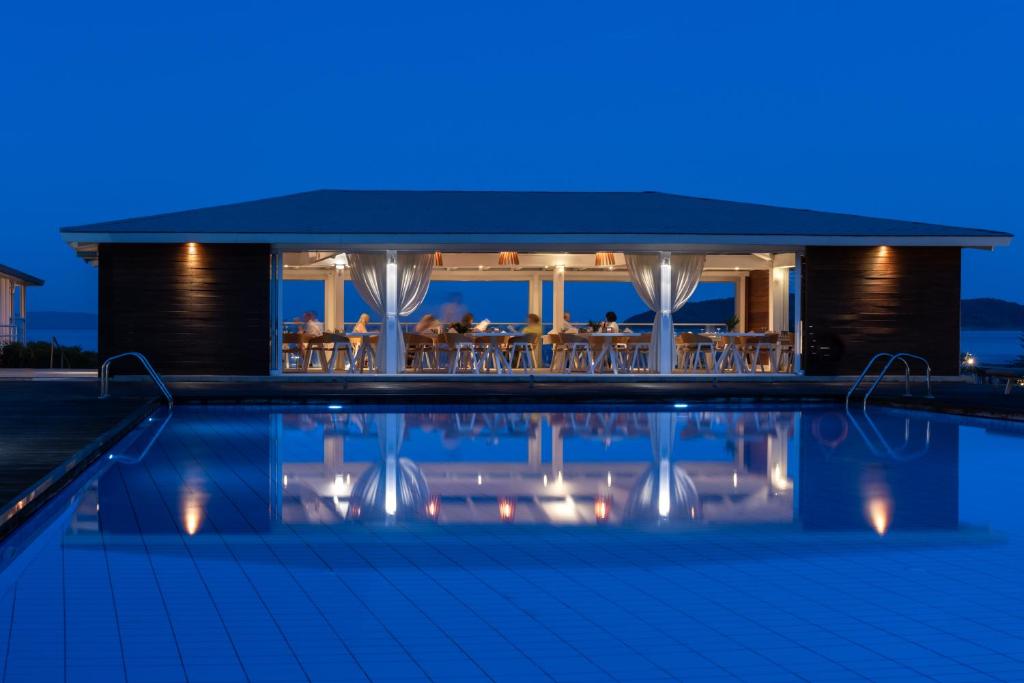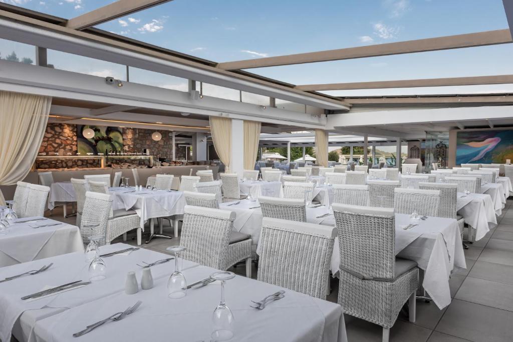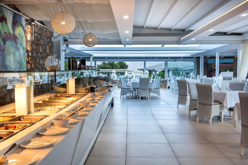 La colazione greca viene servita presso il ristorante principale Amvrosia, mentre lo snack bar Pergola propone snack e pasti leggeri e il ristorante alla carta del Mesoyios vi attende per pranzo e cena. Presso il ristorante a buffet del Kassandra potrete gustare la cena inclusa nel trattamento di mezza pensione, mentre il bar Pelagos a bordo piscina è il luogo ideale per dissetarvi con un drink.