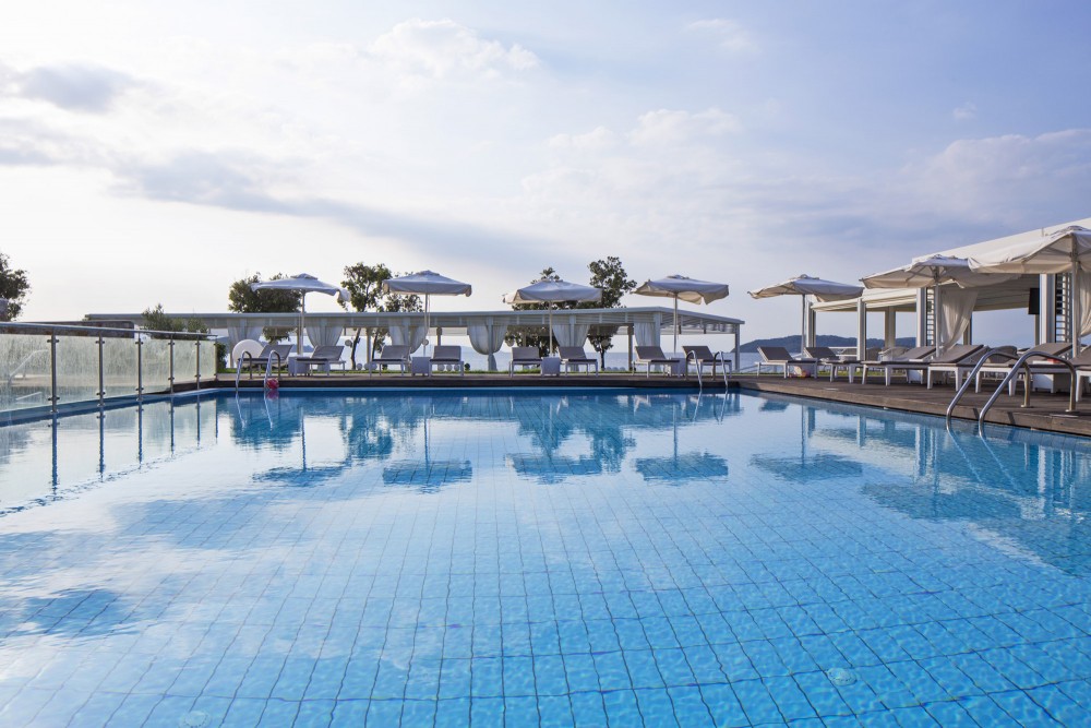 Albergo a 5 stelle dotato di accesso diretto alla spiaggia sabbiosa di Vasilias, il Kassandra Bay Hotel offre 2 piscine con acqua di mare, una piscina per bambini, un'ampia terrazza in legno circondata da giardini fioriti, 3 ristoranti, uno snack bar aperto tutto il giorno e un bar a bordo piscina.