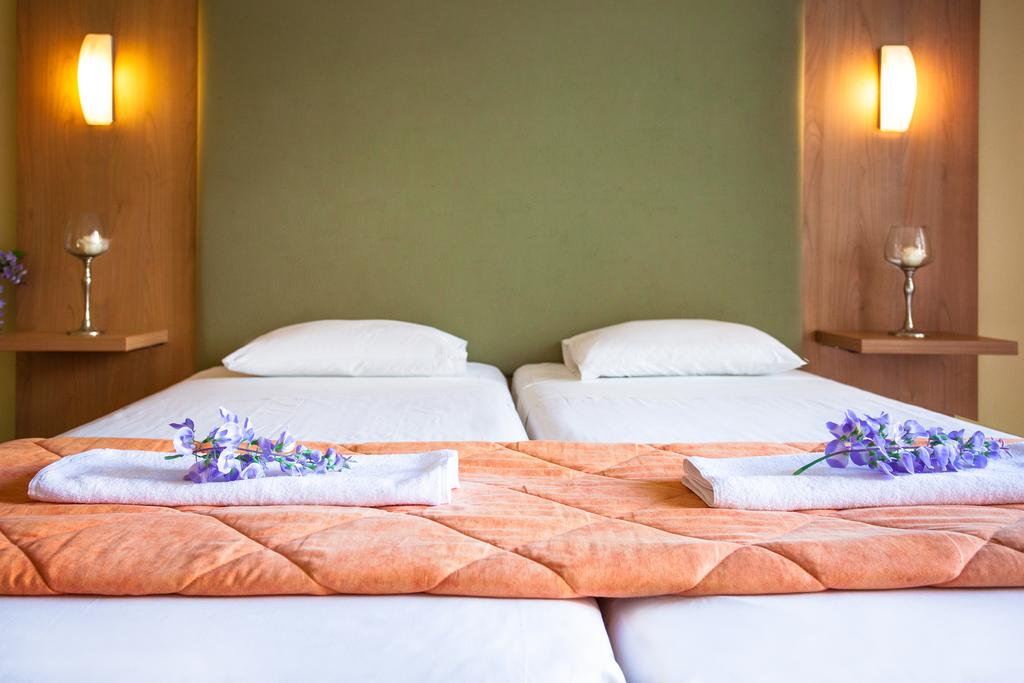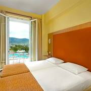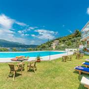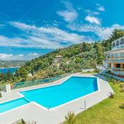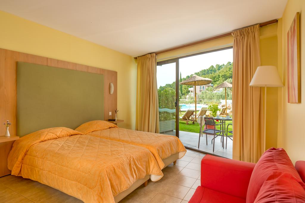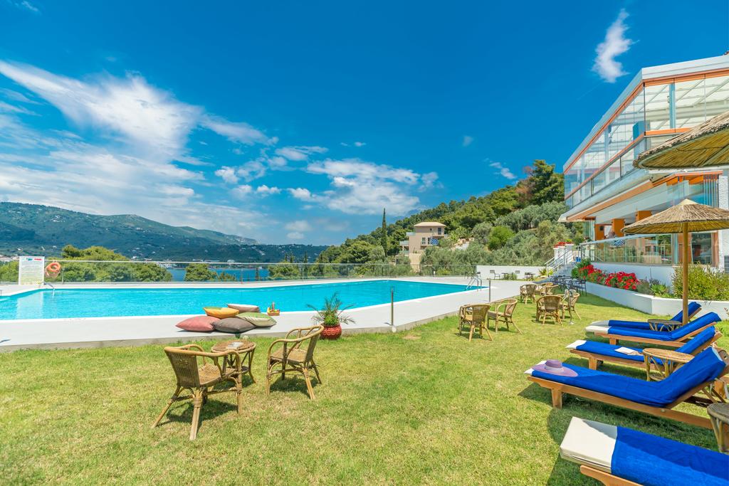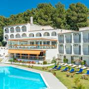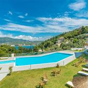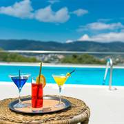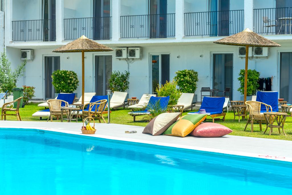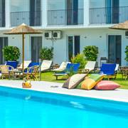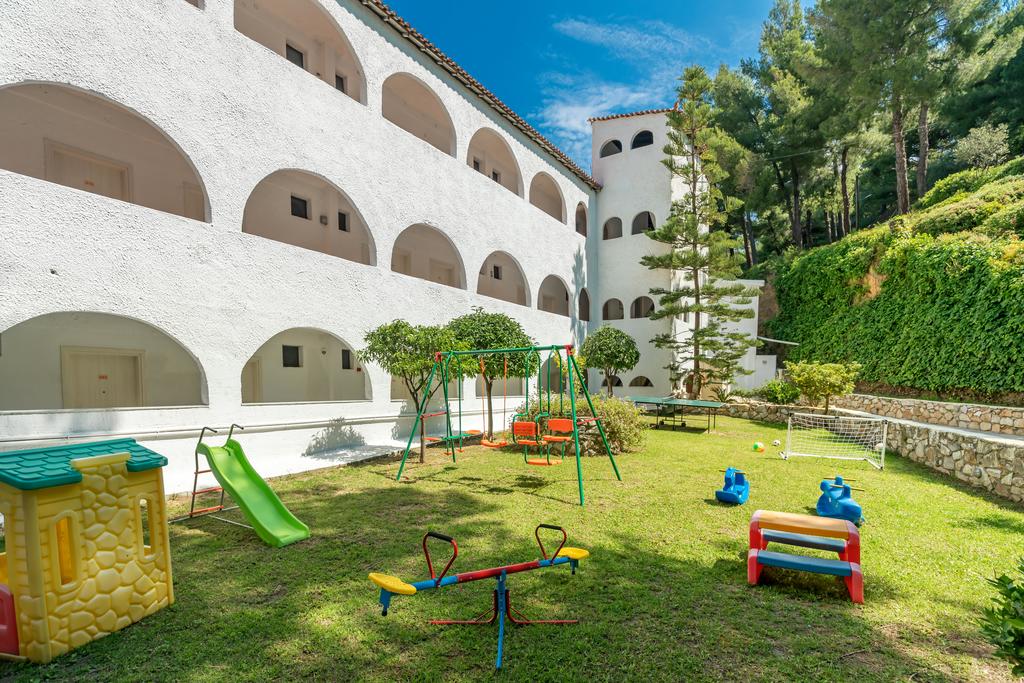 Lo sfondo è un fitto bosco di pini e ulivi che sono caratteristici di Skiathos e creano un microclima unico, garantendo un'oasi di rugiada durante i mesi estivi. Il complesso offre una bellissima e grande piscina e mentre il sole tramonta, il bar e il giardino offrono l'ambiente perfetto per gustare un cocktail rinfrescante mentre godersi l'atmosfera. Alla sera potrete deliziarvi al ristorante con pietanze ricercate e con prodotti di qualita'.