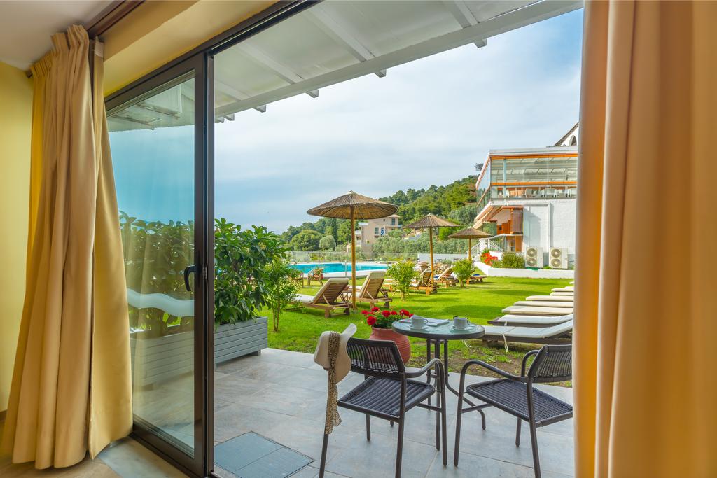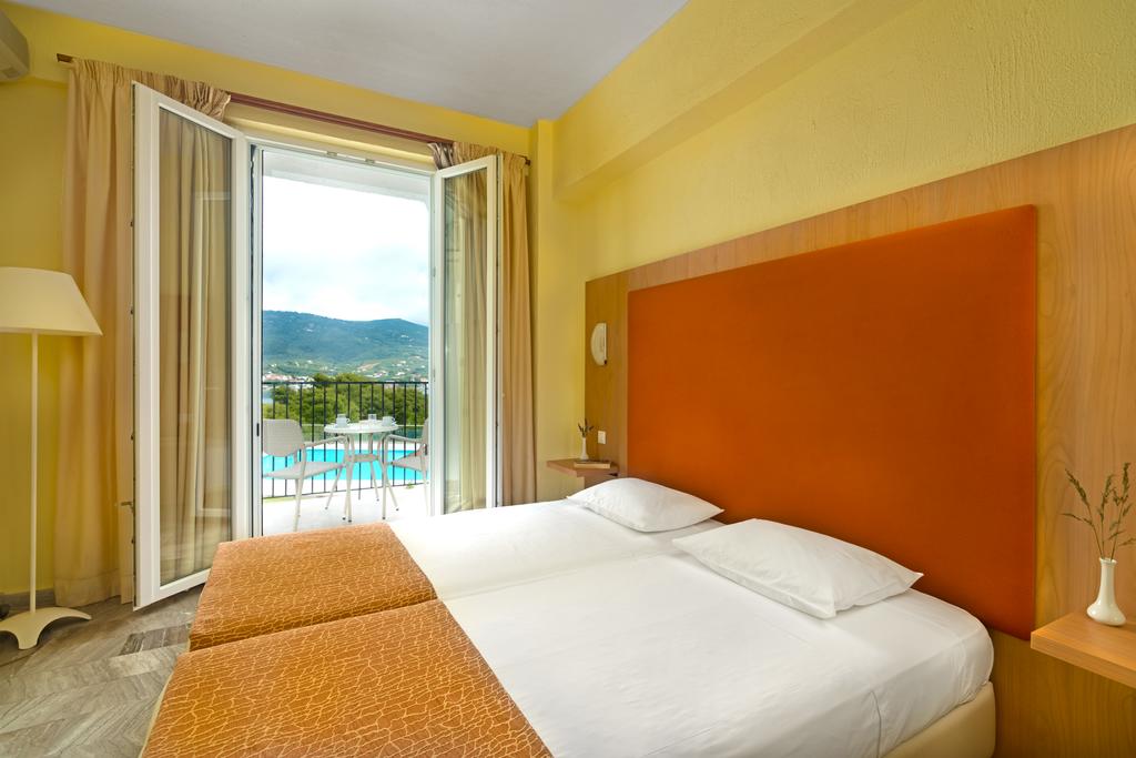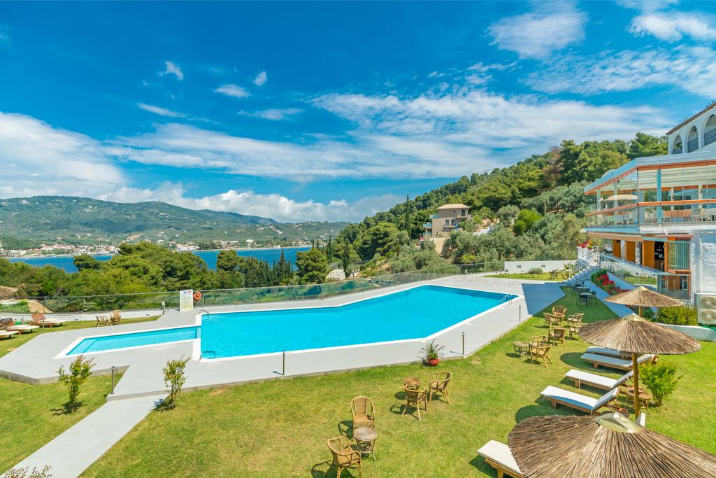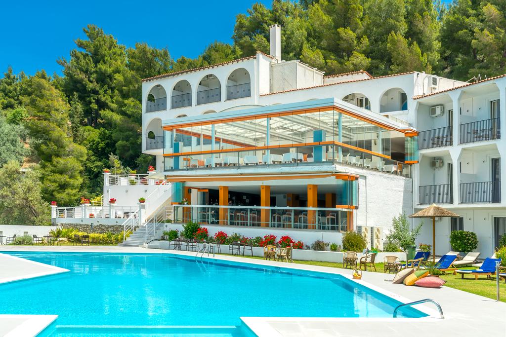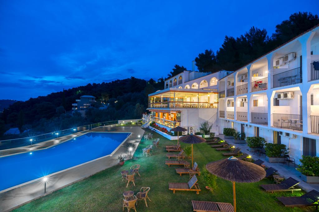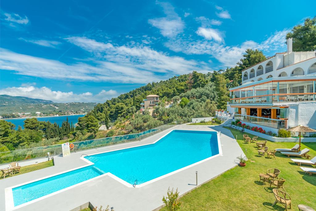 Elegante hotel situato nella rigogliosa e verdissima regione di Punta con un'affaccio sul golfo di Skiatos e sulla citta' regalando magnifici panorami del blu profondo del Mare Egeo in una tranquillitaì assoluta ed a soli 2 kilometri dalla cittadina dove vi aspetta una vita notturna cosmopolita. Le camere sono arredate con gusto raffinato e dotate di tutti i comfort quali : bagno privato en-suite, telefono, TV satellitare TFT-LCD, frigorifero, aria condizionata, asciugacapelli e cassetta di sicurezza.I balconi sono dotati di tavolo e sedie, creando le condizioni ideali per voi per godersi i panorami mozzafiato, in qualsiasi momento della giornata.
