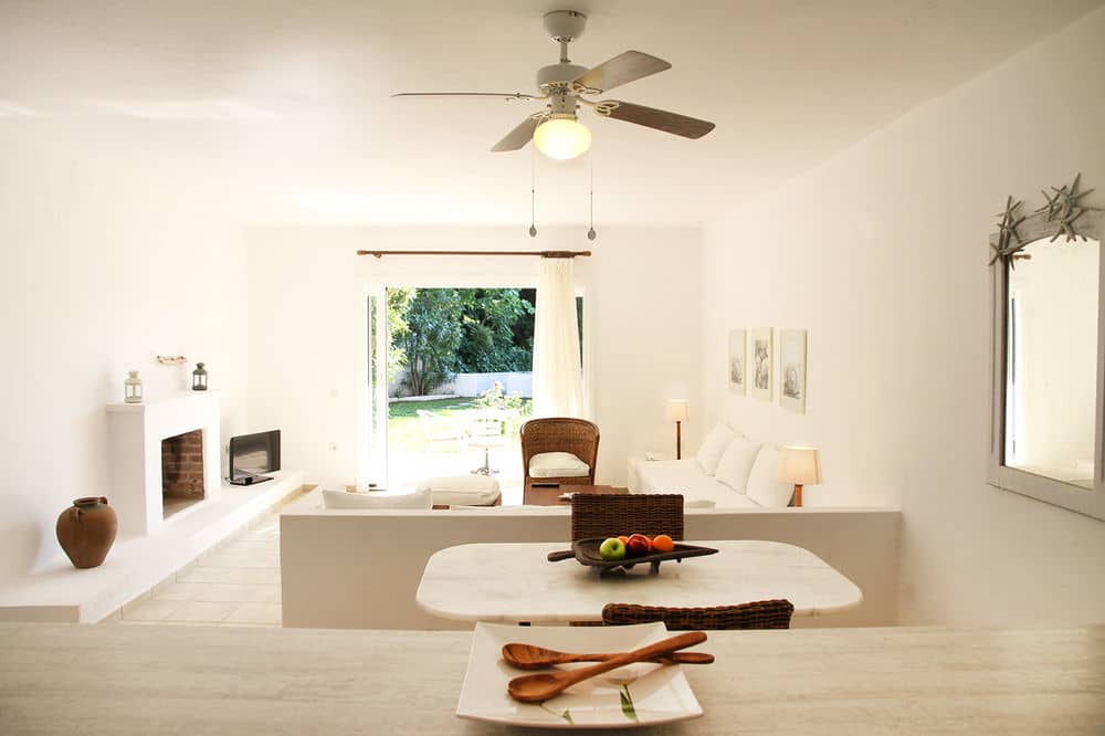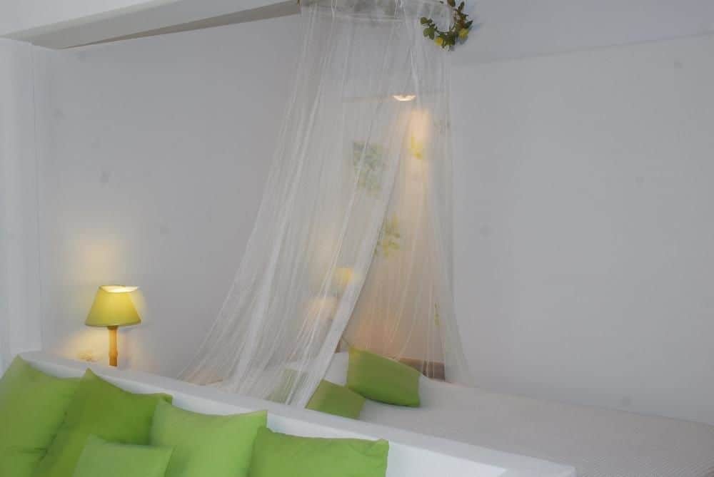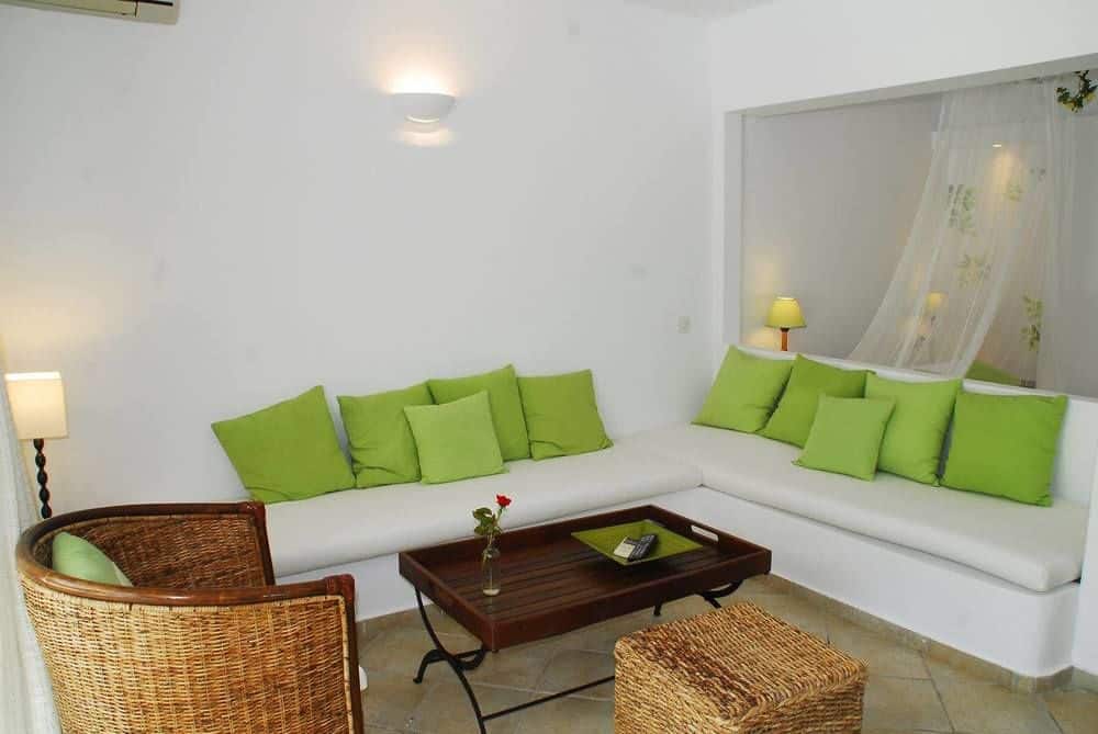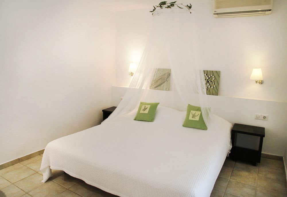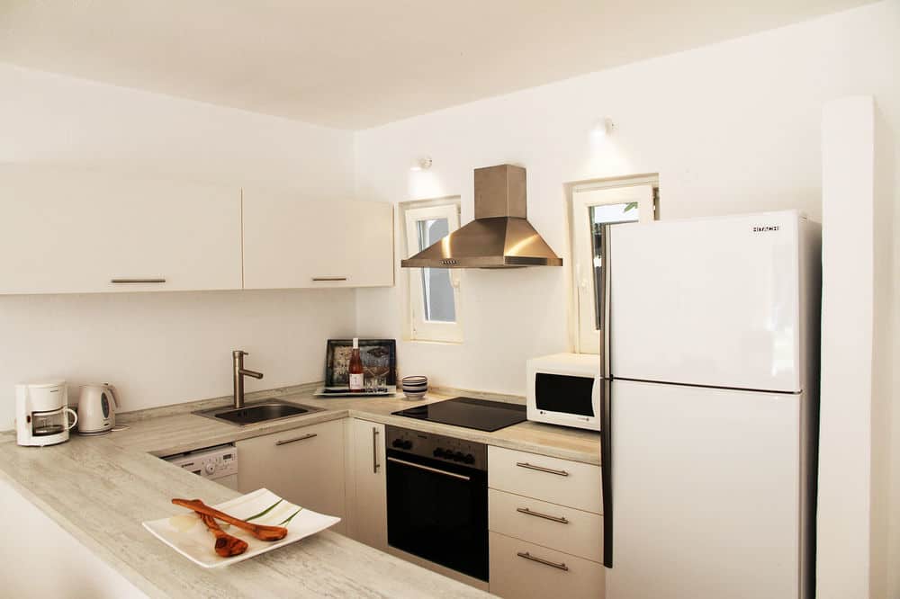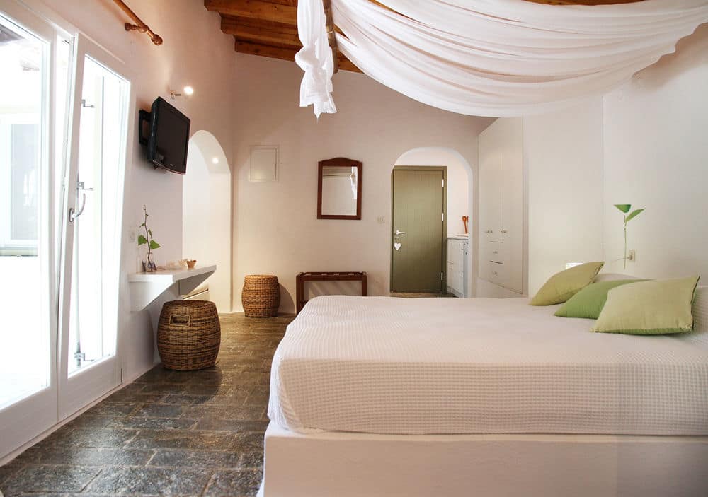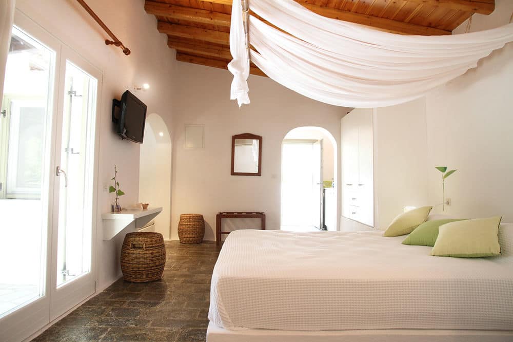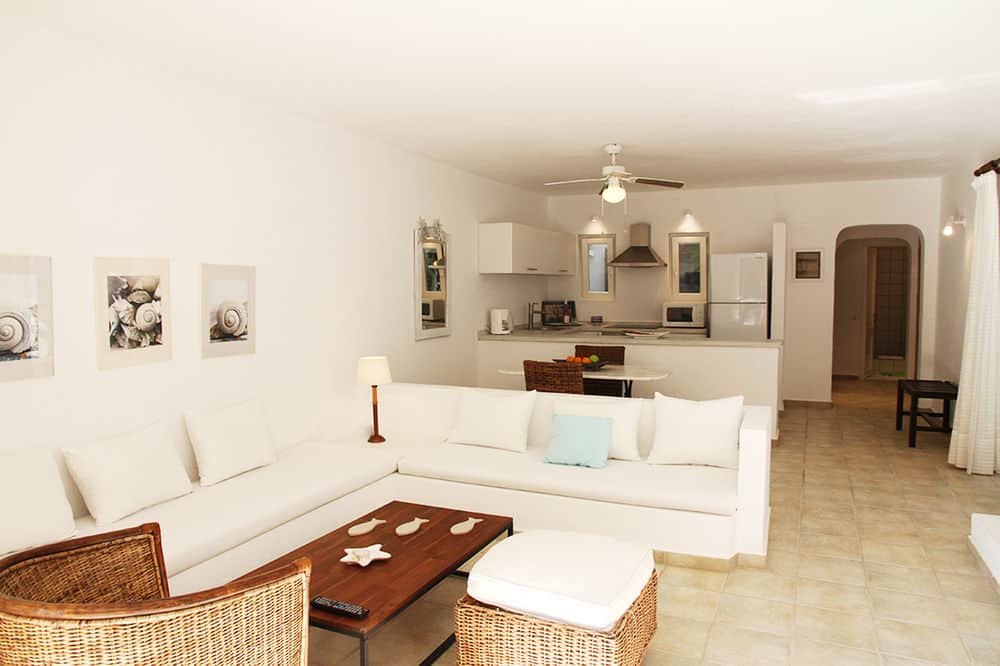 Le sistemazioni, declinate sui toni del bianco, sono dotate di aria condizionata e TV, oltre che di angolo cottura completo di frigorifero e piano cottura. I balconi e le verande sono arredati.